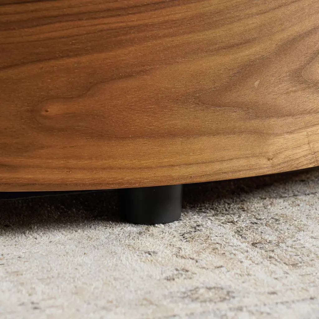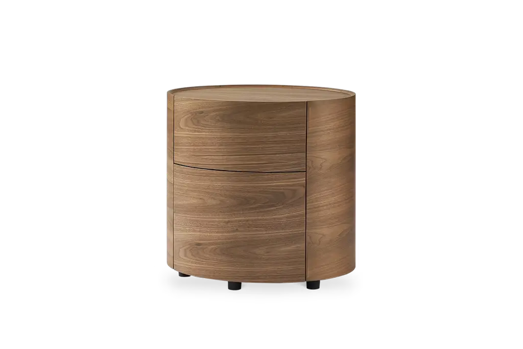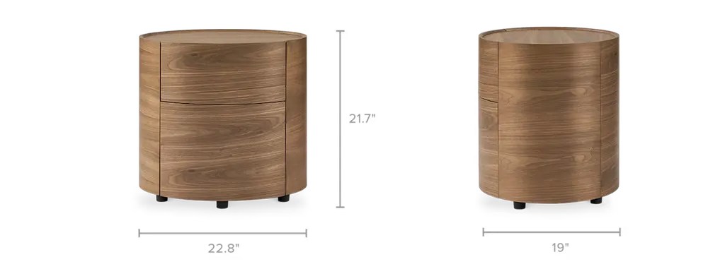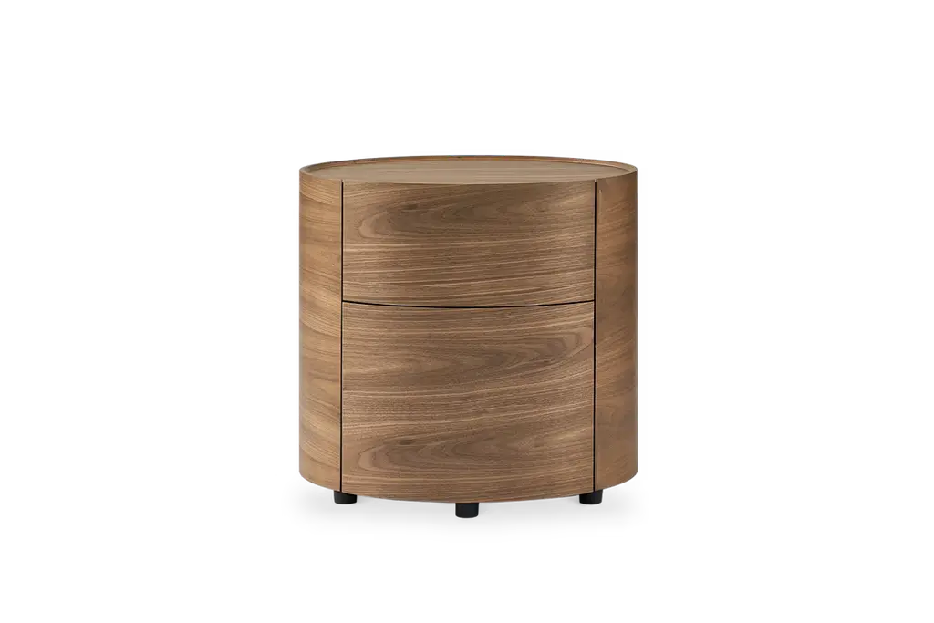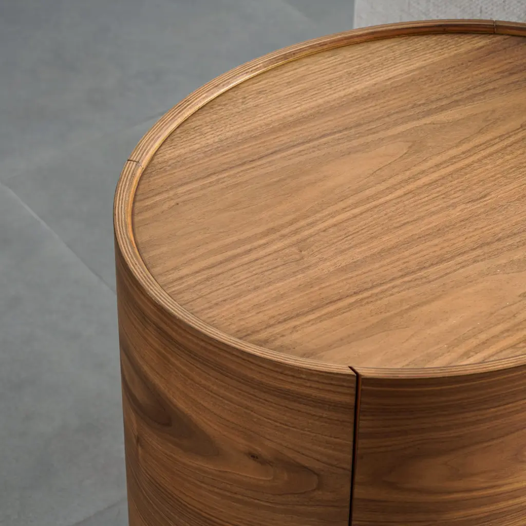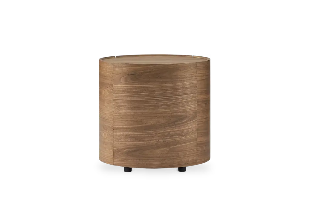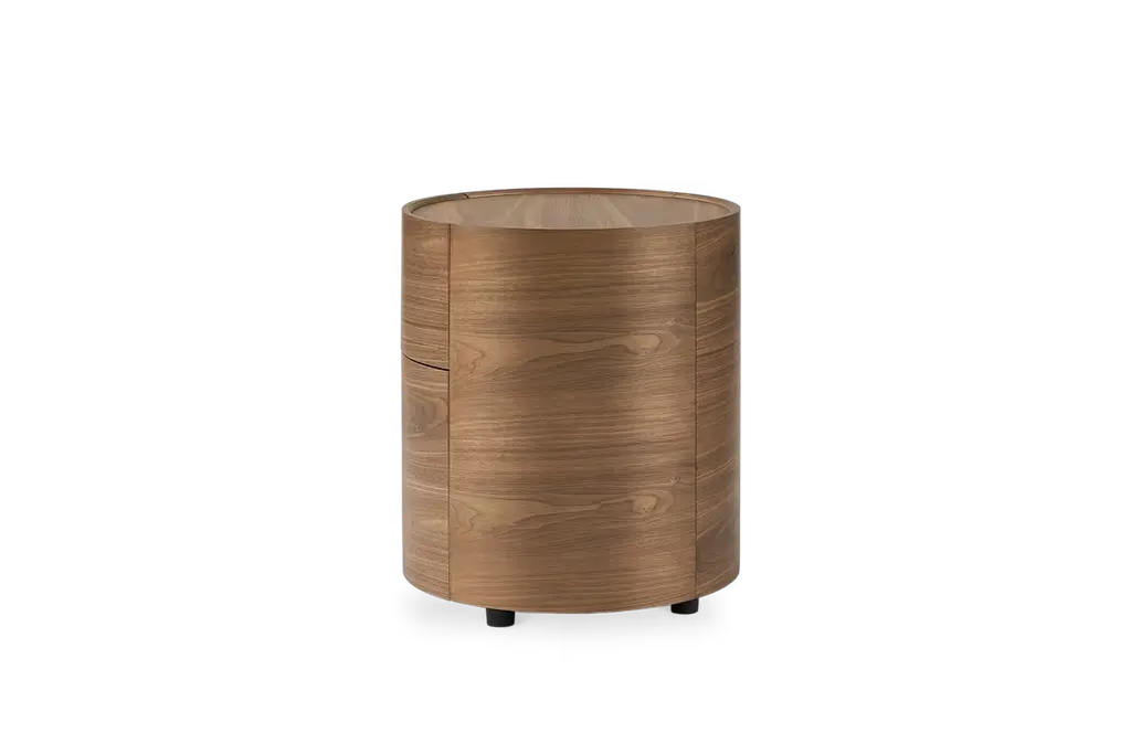 Richly-grained in walnut and with an outstanding cylindrical form, the Mika end table makes a striking addition to your living room.