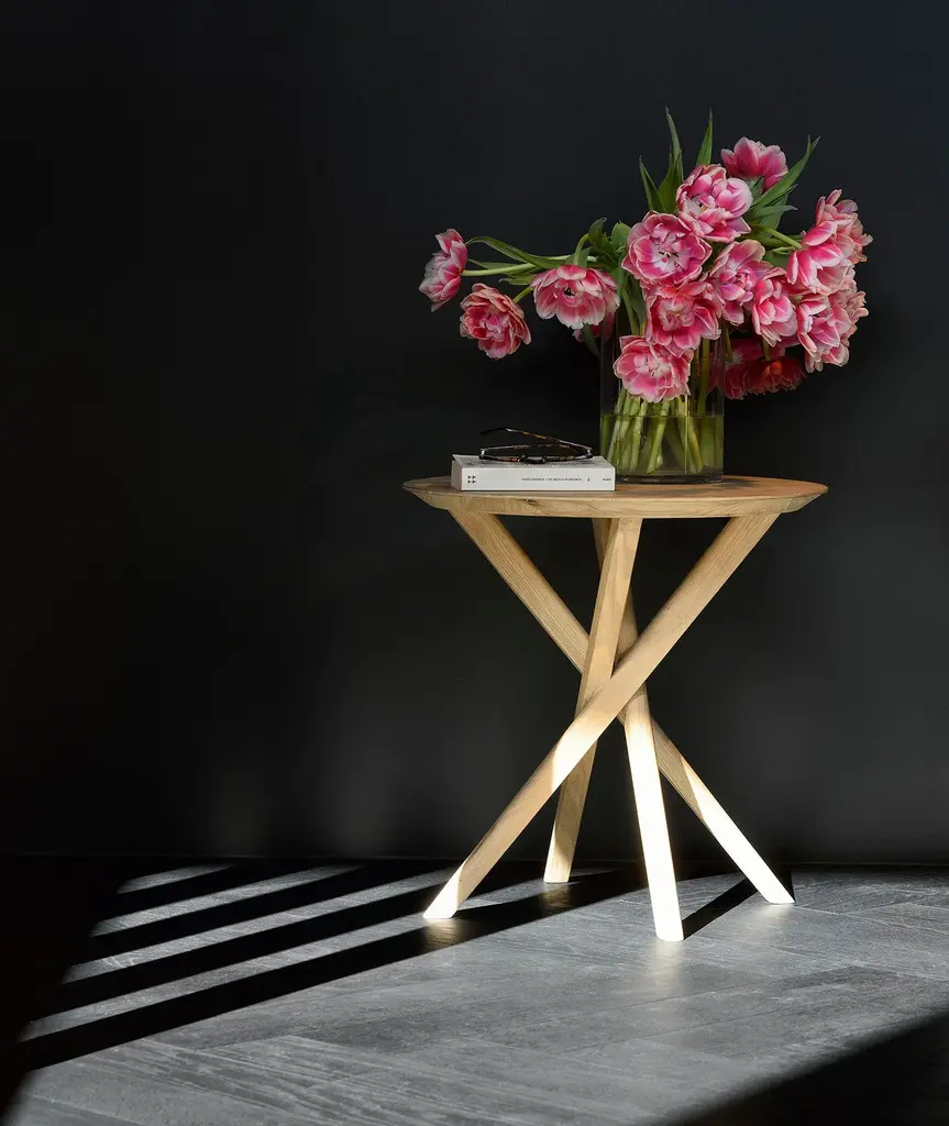 The Mikado side table, designed by Alain van Havre, is not simply a smaller version of the Mikado dining table. It's a complete reinterpretation of its larger design and a study of balance and symmetry.