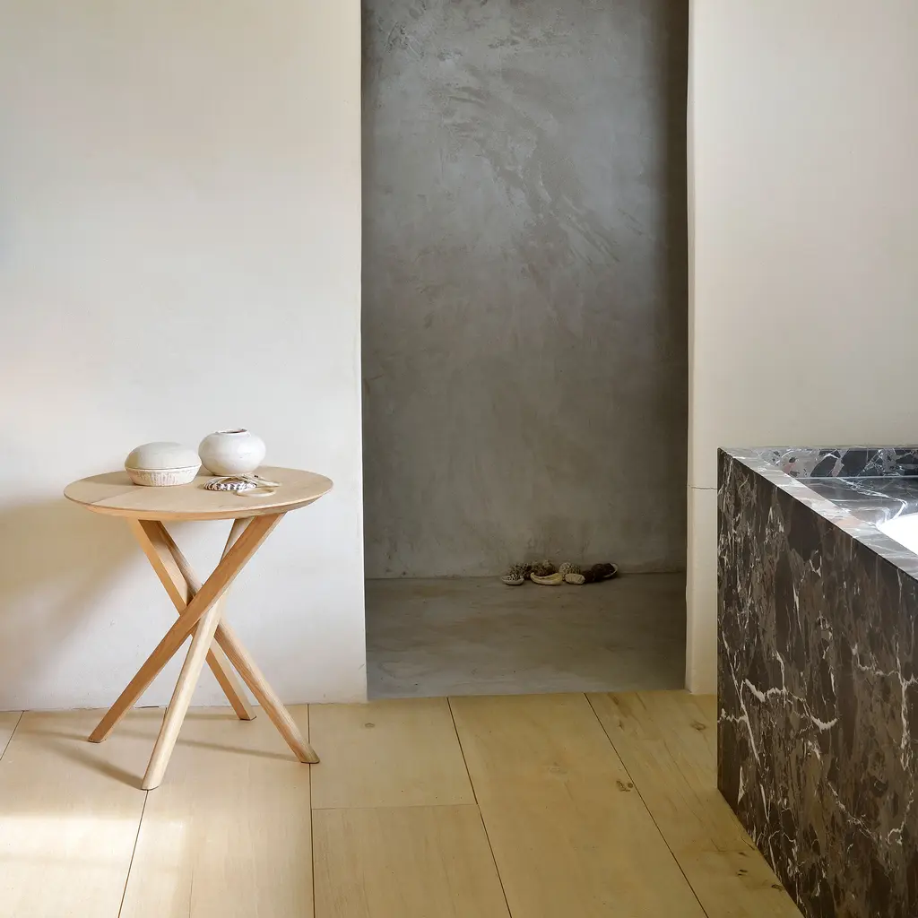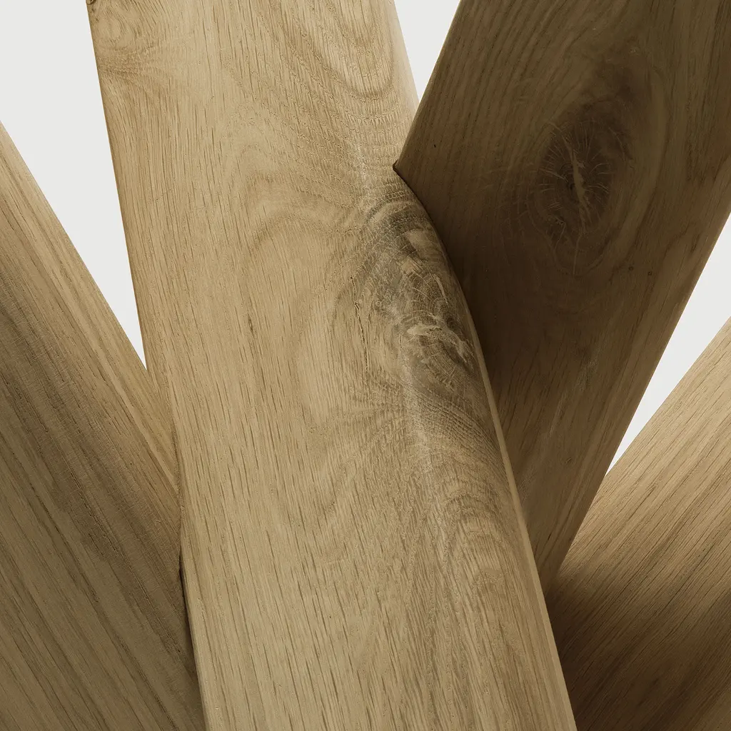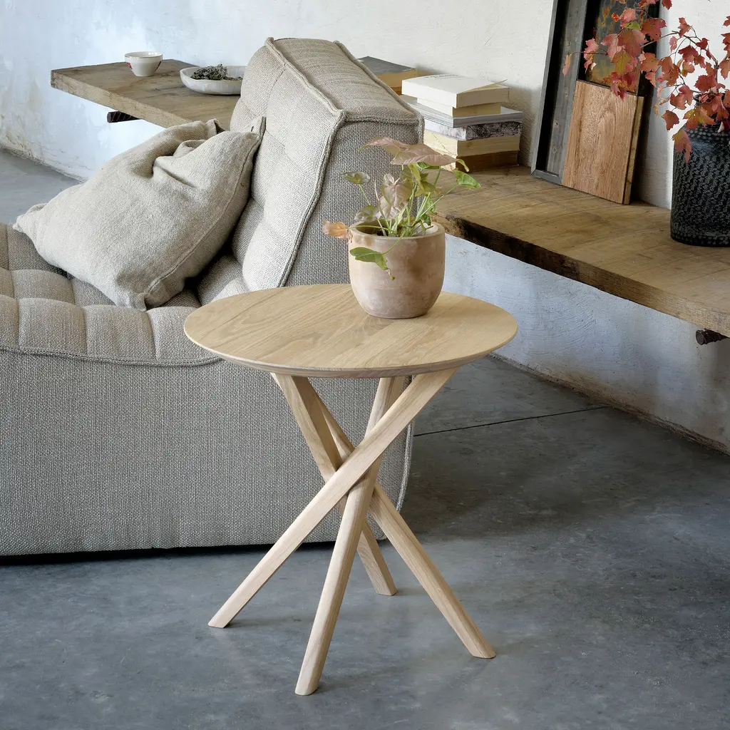 A creative exploration of balance and stability, the Ethnicraft Mikado Side Table references the well-known game with a distinctly shaped base. Designer by Alain van Havre devised the inventive base with four intersecting legs that cross each other in a Mikado-like fashion. Here, they remain static and perfectly stable to provide support to the circular top. Great as a table you can use every day for your morning coffee or afternoon tea as you lounge in an armchair or on a sofa, the Ethnicraft Mikado Side Table is also an excellent choice to display decorative items, vases, and more. Crafted from solid oak, this durable table boasts a hardwax oil finish.