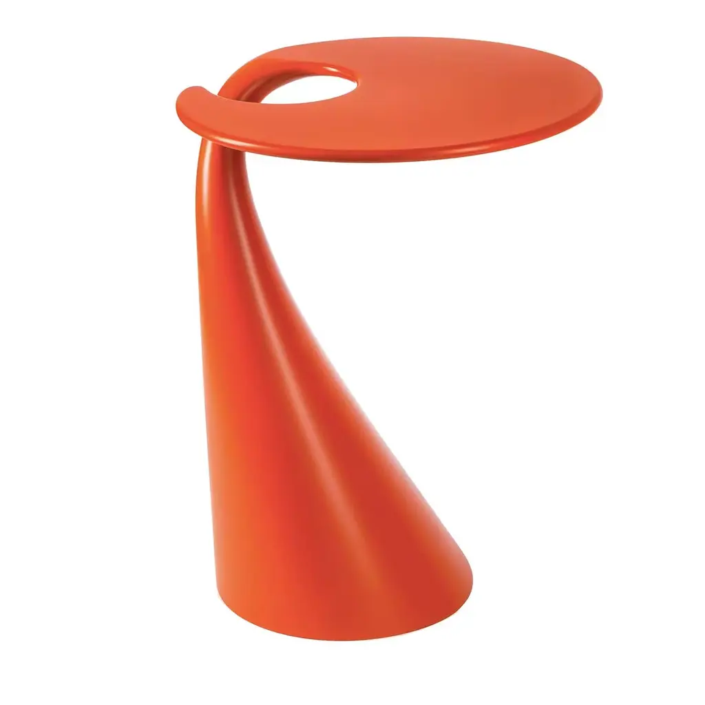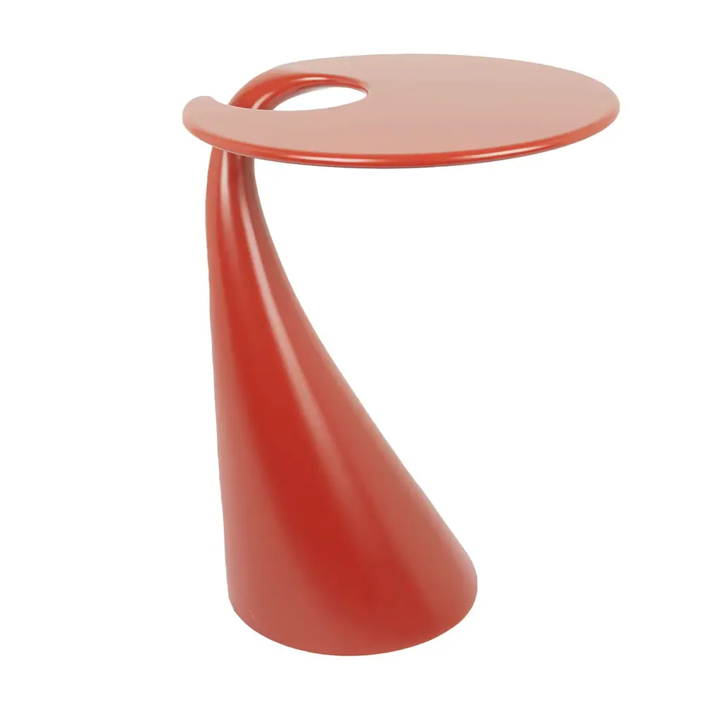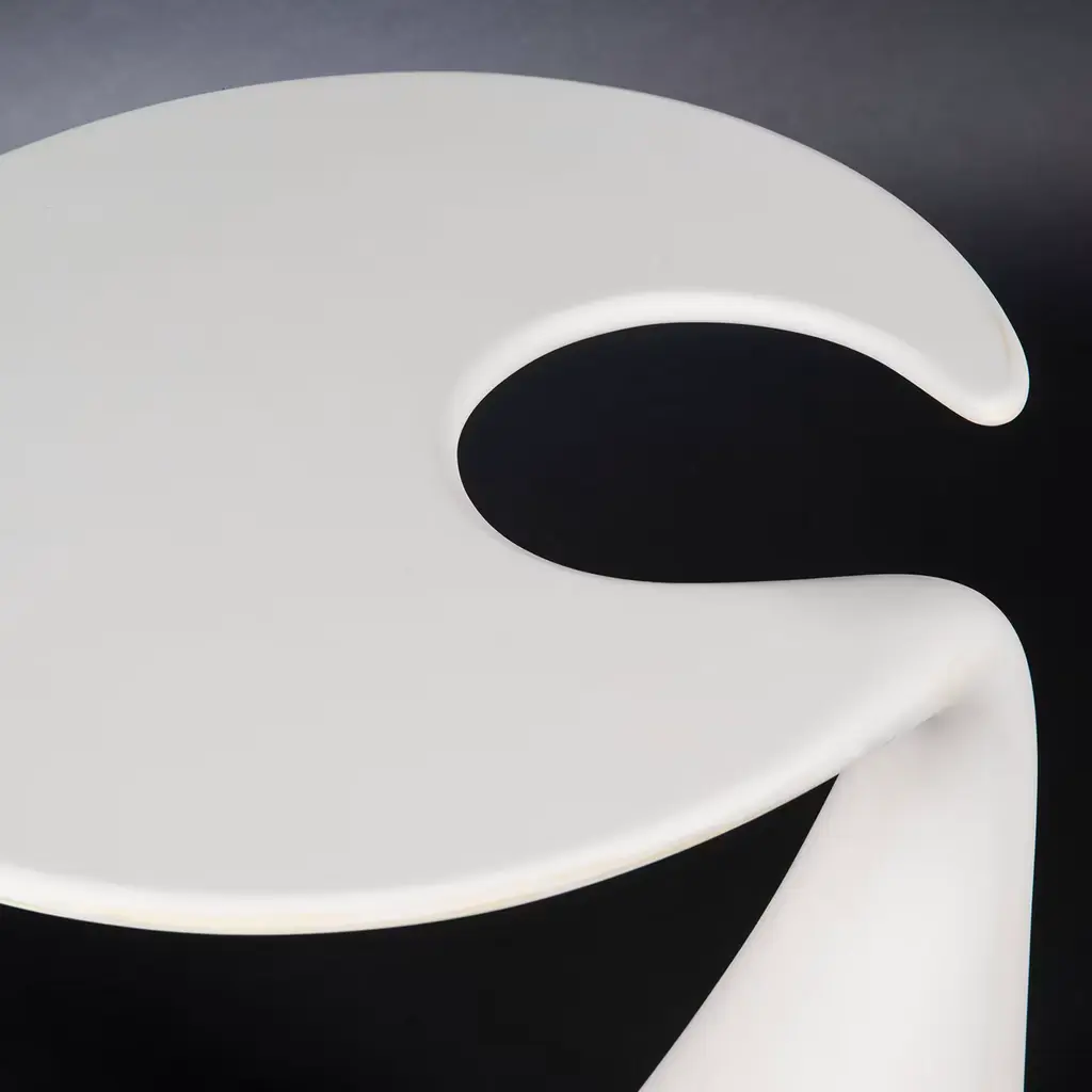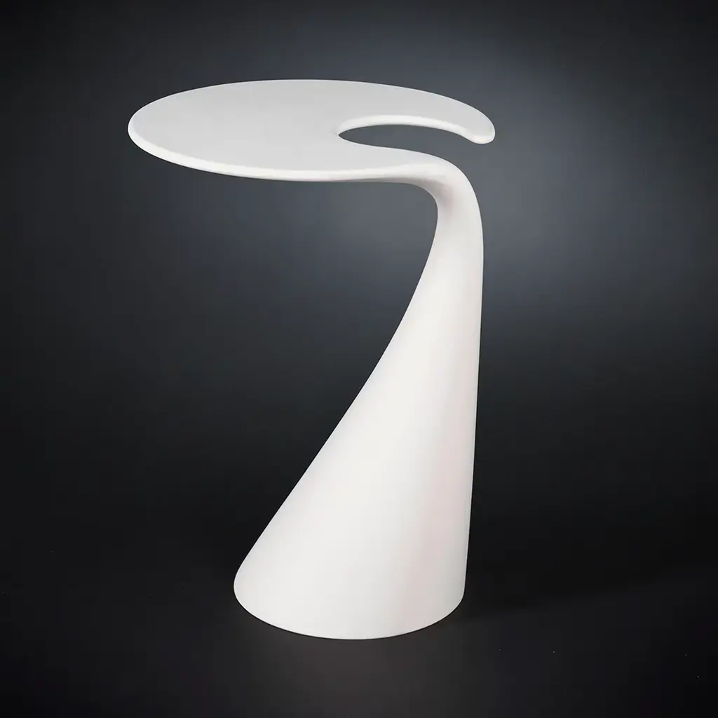 This striking side table is a lively addition to a contemporary interior. It can be used in a variety of settings, either in a living room or study or as entryway accent or nightstand in a bedroom. Its curved body curls to create the thin, open top and infuse a refined sense of movement in any room of the house. It is made of resin and finished with a white color that will stand out against a dark background.