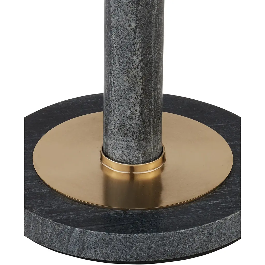The Prado Black Marble Drinks Table is crafted from Midnight black stone and polished brass-finished metal, this striking design featuring a series of shapes that layer gracefully from the stacked base to the smooth stone tabletop. The rich contrast between the deep, inky stone and the warm glow of the brass finish adds depth and sophistication.