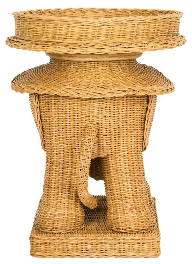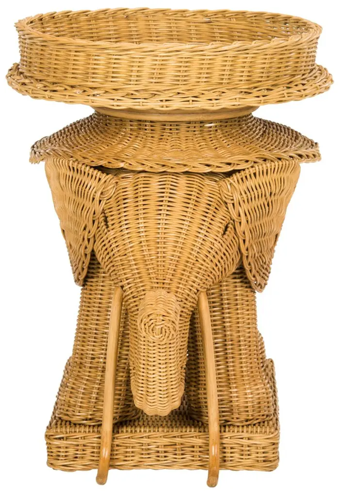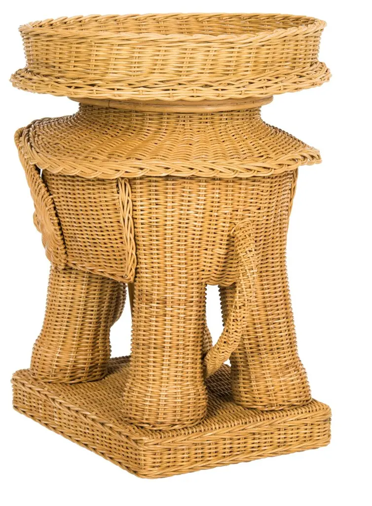 Drawing its inspiration from a five-star African hotel, this side table is beautifully crafted of rattan in the shape of an elephant.
