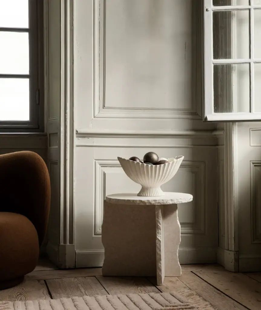 Whether you use it as a side table or as a decorative sculpture, the Mineral Sculptural Table makes an impactful impression in your home. Made in 100% bianco curia marble, it is a real statement piece, and with edges that are broken by hand with a chisel, each table is unique. Characterised by its distinctive T-shape, rough edges and contrasting polished surfaces, it has a raw, brutalist expression that will spark conversation.
