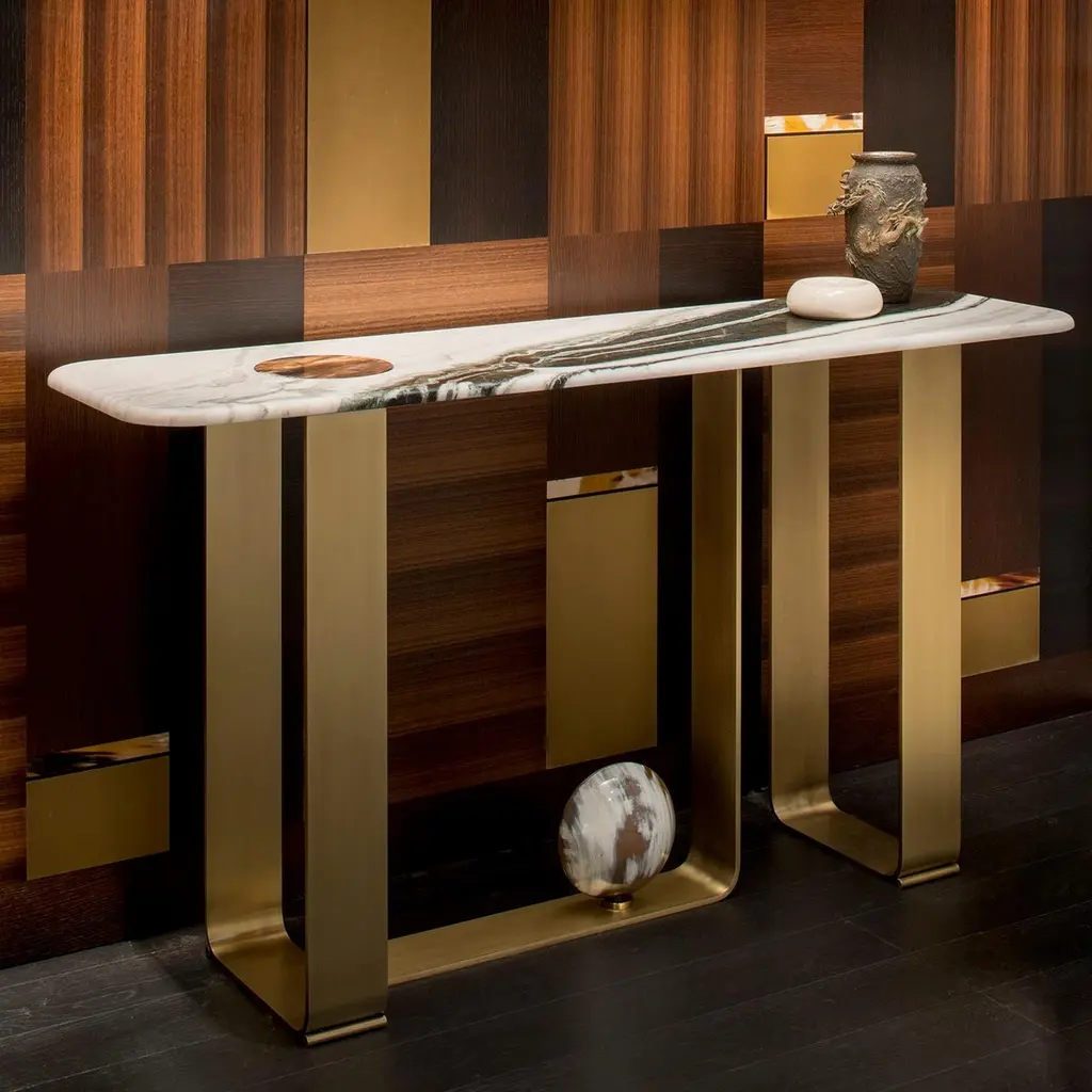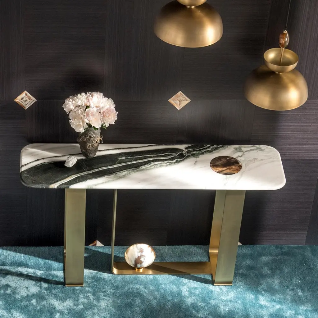 Minerva Console Table In Marble With Corno Italiano Accents, Mod. 7005s