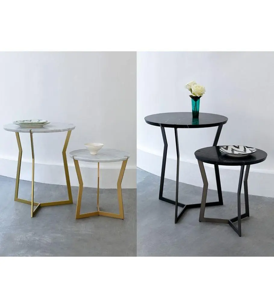 Mini Carrara Marble Star side table by Olivier GagnèreMaterials: Pedestal table, 20mm Carrara or Marquina marble top. Base in gold lacquered metal.Technique: Lacquered metal, polished marble. Dimensions: Diameter 40 x Height 40 cmAlso available in Nero Marquina Marble, and gold or bronze base, and in size large.The Star collection by French designer Olivier Gagnère is a line of coffee tables and console tables in the spirit of Decorative Arts, elegant, in gold or bronze lacquered metal with its tops in white Carrara marble or black Marquina marble.COEDITION is a French publisher of high-end contemporary furniture created in 2014. Thanks to the diversity of the languages ??of its international designer's partners, COEDITION is an avant-garde brand, with the concern and the desire for sustainability. They are selected with great care. Among other things, solid woods and veneers are, depending on their origins and terms of supply. Our manufacture is only made in Italy, with the best craftsmen in the profession, committed to quality and the environment.Today 13 great designers are creating exclusive collections for COEDITION: Patricia Urquiola, Patrick Jouin, Luca Nichetto, Rodolfo Dordoni, Shin Azumi ”, Michael Anastassiades, Olivier Gagnère, Dominique Perrault and Gaelle Lauriot Prévost, Marco Zanuso Jr., Arnaud and Aki Cooren, and finally Alain Moatti.Our catalog offers furniture for the home, public places, reception areas, restaurants, hotels. Our raw materials are carefully selected, solid woods and veneers, according to their origins.Olivier Gagnère is a French artist and designer born in 1952. In the 1980s, he met designer Ettore Sottsass and worked with the Memphis group in Milan. He then worked with Murano glassmakers and Master Craftsmen from all over the world for the realization of his first creations, in particular glass and porcelain objects. He collaborates with major French brands as well as with galleries such as Marc Lamouric, Néotu, Kréo, or even Maeght where his works are exhibited. From 1992, Olivier Gagnère designed, among other things, a porcelain collection for the great Bernardaud house, which he would later take care of fitting out the rue Royale tea room in Paris. Then in 1994, he decorated the Café Marly at the Louvre Museum by developing all the furniture and lighting. His successes followed one another with the Cristalleries Saint Louis, Artelano, Véronèse. Between renovation, planning, ceramist, cabinetmaker, interior architect, decorator, and designer, Olivier Gagnère is a complete artist with an eclectic profile who draws his inspiration from the decorative arts mixing tradition and modernism.