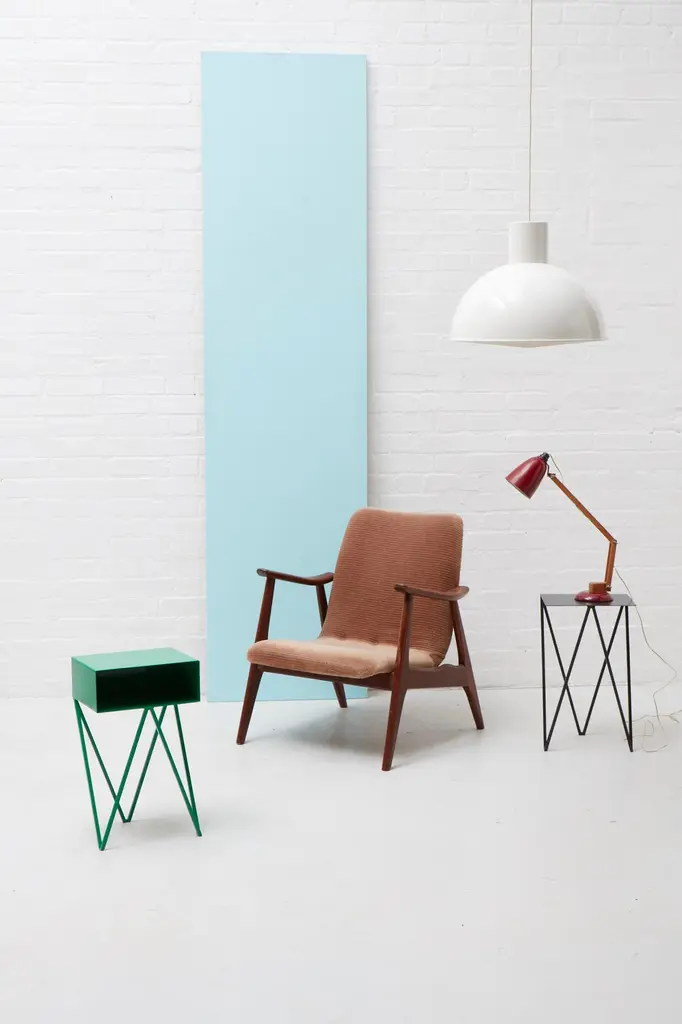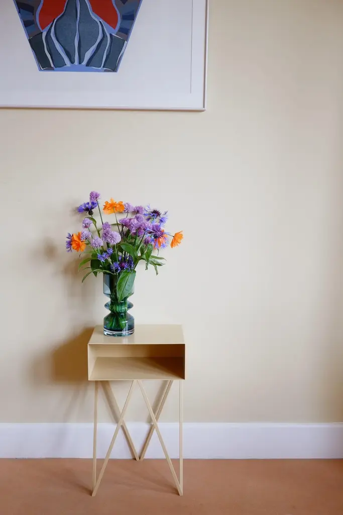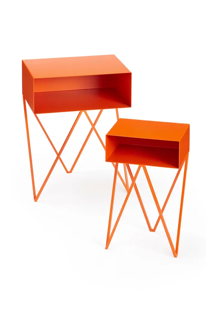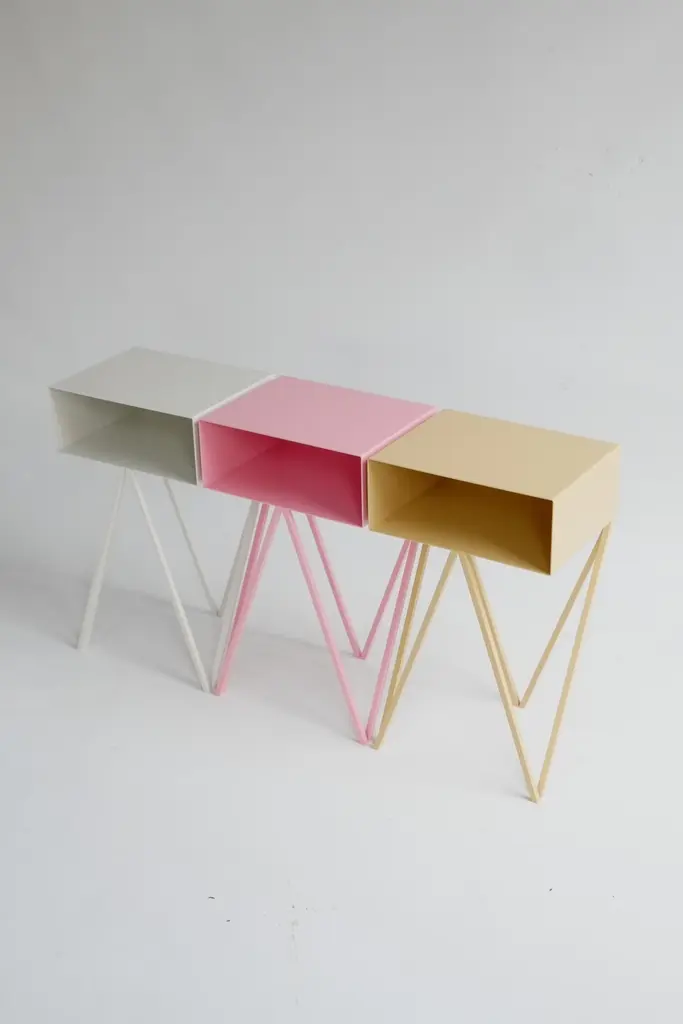 The Mini Robot side table is a perfect next to a sofa or chair, just large enough to hold magazines. Made with solid steel legs, the table is made to last. The Mini Robot bedside table has &New's signature Zig Zag legs and is available in fifteen powder-coated colours.Colour samples available to order from our storefront - LU2894331610202 Measurements: approx. 30cm wide, 23cm deep, 50cm high.All &New products are manufactured in Britain in small batches. Worldwide delivery available. Mirka and Jo &New Modern British FurnitureZig-zag-legs/ Registered design. Community design registration number: 002391813-0001.