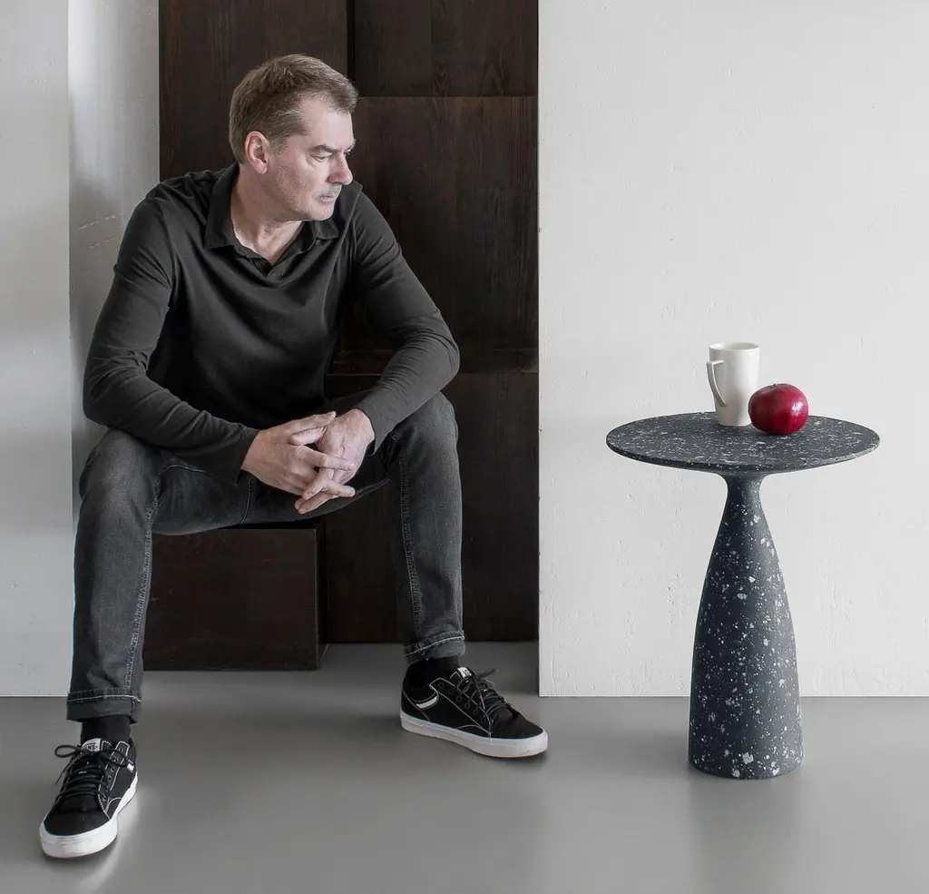 Minimalist 40 Mottled Black Side Table by Donatas ZukauskasDimensions: Ø 40 x H 50 cm.Materials: Mixed material.Donatas ŽukauskasHello, my name is Donatas Žukauskas, I am an interior designer. I have graduated Vilnius Academy of Fine Arts and for more then 15 years I have been designing the interiors. Since I can remember myself I have always been interested in the art and this is the reason I have always tried to decorate interiors with art works. I strongly believe, a perfect interior cannot be without art!This concept used to get difficulties because could not find necessary objects for interior like stylish tables, lamps, lanterns, vases, sculptures. This gave an idea to create some arts by myself. Exceptional hand-made details for the home, cafe, and hotel spaces provide expressiveness and manners.My works are exposed in different countries of the world. Recently 50 lanterns went to Sheraton’s restaurant at Doha, Qatar.