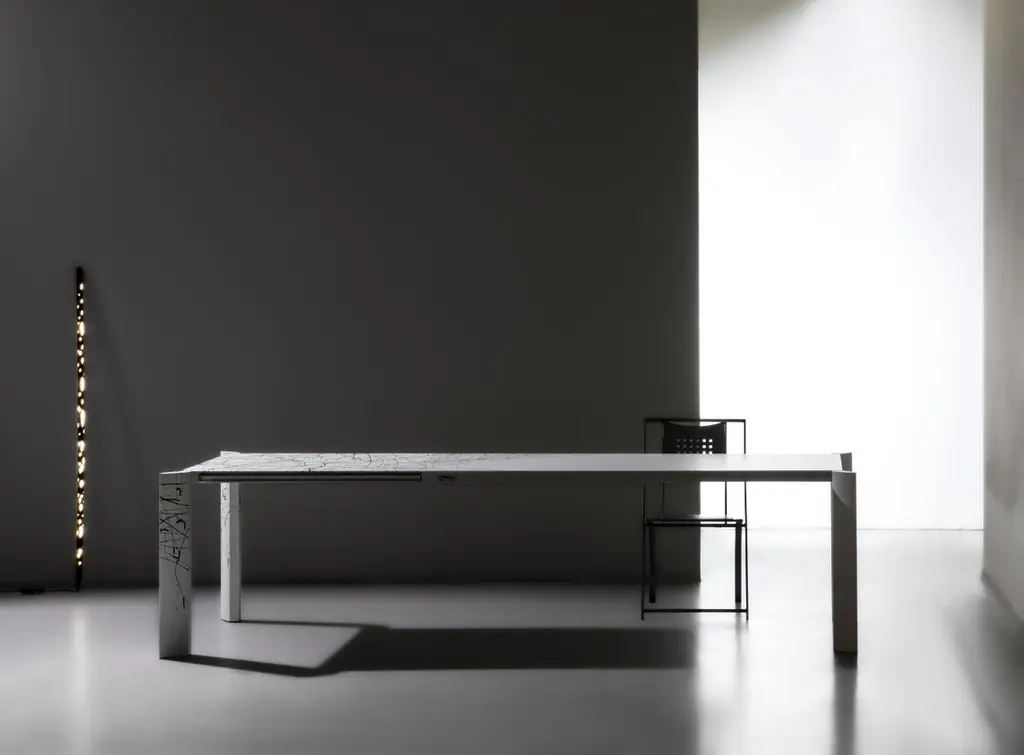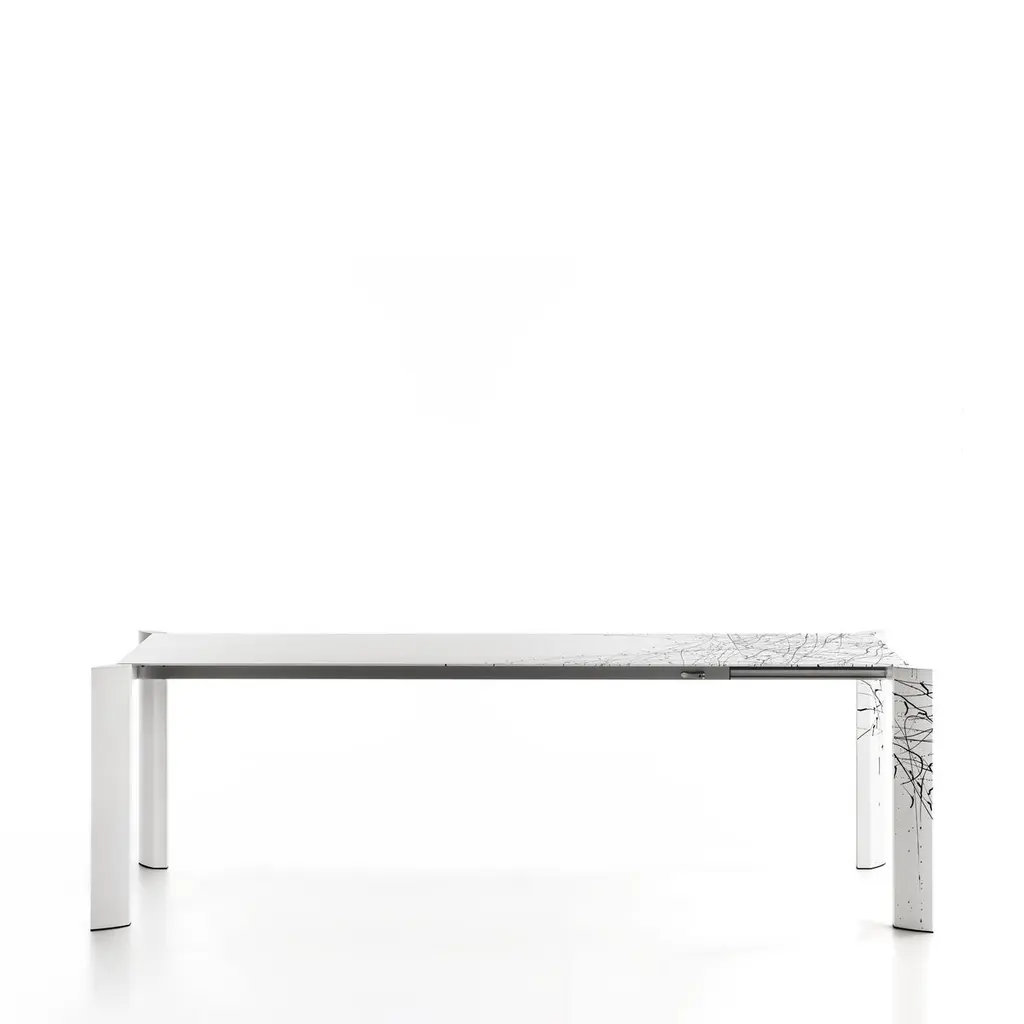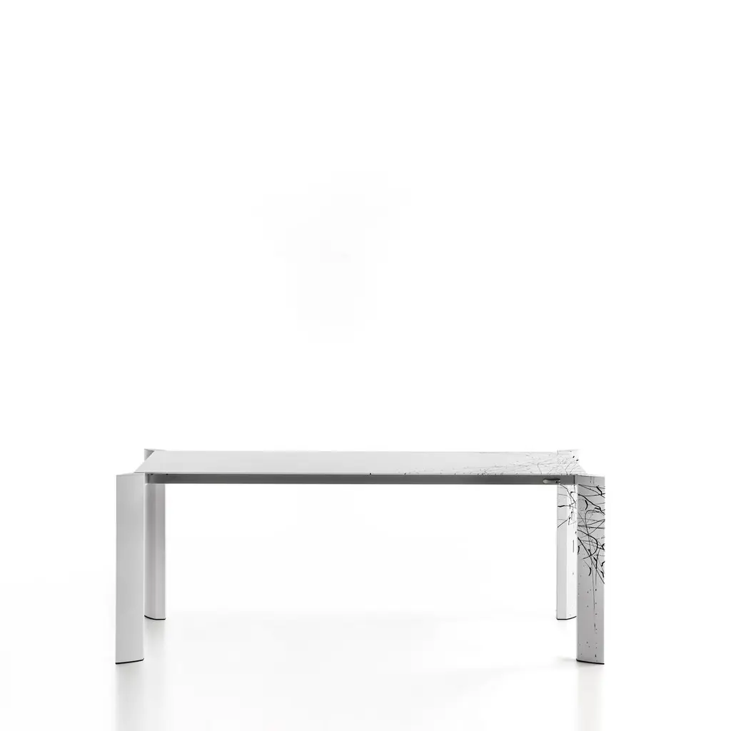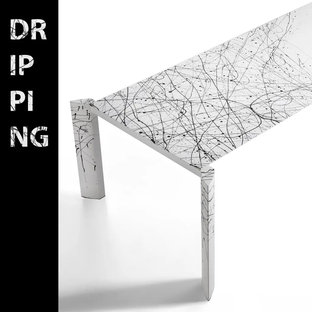 An honest homage to Jackson Pollock's unique painting style. This futuristic-looking dining table is sure to give a stunning impact in any studio blowing the mind away with the contradiction of the straight structural lines and the smooth curves of the painting / dripping process. The final cover is in Mais paper and gives the touch a warm and smooth feeling while the recycled aluminium used in the crafting process makes this table a 100% recycled piece of furniture. Featuring beautiful extruded legs and an extendable top capable of reaching 290 cm of table surface, this table is suitable for interior and exteriors with a design able to shine in any house situation.Dimensions (cm) w 290 (210 closed) x d 100 x h 74Tabletop measurements (cm) 190 x 80Handmade in Italy