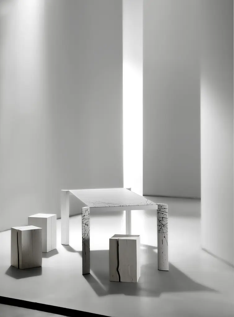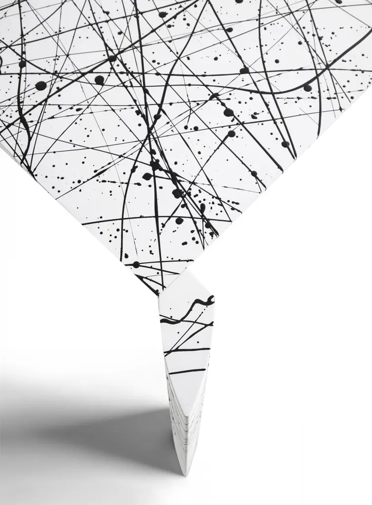 Minimalist Dripping Table Aluminium Extendable White Handpainted Pollock Homage