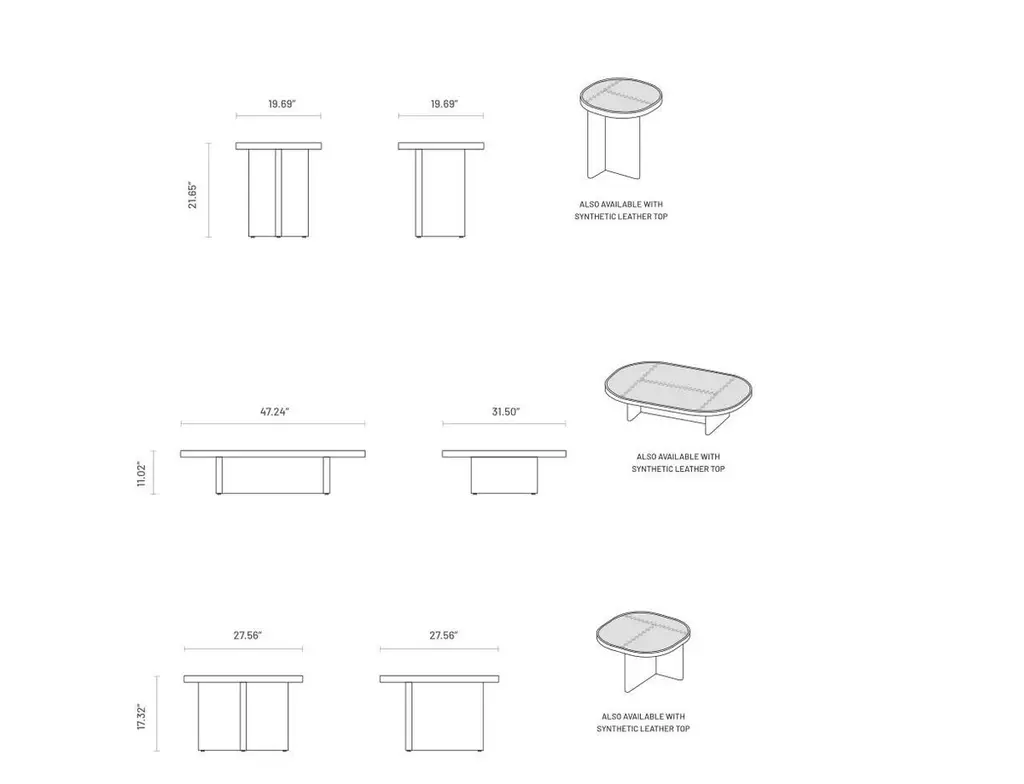 This minimalist table set includes three tables of varying sizes, each versatile enough to function as a side or coffee table. The coffee table features a distinct H-shaped wooden base, while the side tables showcase a sleek T-shaped base. Rounded corners add a soft touch to the design and can be customized with finishes like lacquer, wood veneers, or synthetic leather. Use each table individually or combine them as a cohesive ensemble, letting the unique shapes and differing heights create a stylish, layered look.Contact us to enquire about COM/COL production, requirements and material shipping instructions.Please contact us if you have any questions about customization and pricing. We will be glad to check with the factory’s technical team if sizes, finishes, and colors can be customized. We do our best to expedite production and to ship and deliver product within the listed lead time, however current lead times might be longer due to global shipping backlog and delays. These delays are out of our control and cannot be a reason to cancel an order.