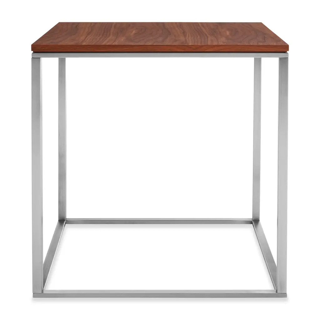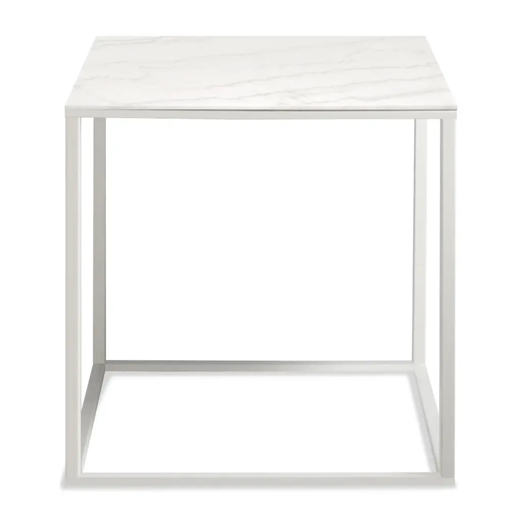 The Blu Dot Minimalista Side Table is a purely geometric design, which pairs a barely-there metal base with a tabletop in a variety of wood or marble choices. An elegant side table that blends into most any modern interior scheme, this Blu Dot design keeps things to the bare essentials, but doesn't stint on contemporary flair. Features