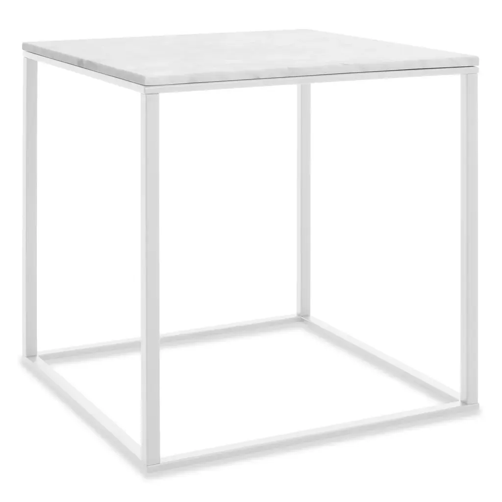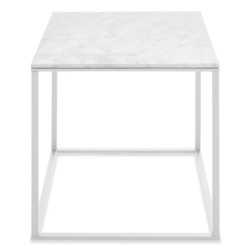 Nothing but the bare essentials here. Sublime stainless steel or powder-coated steel in white or black gently supports your choice of top. Select from Carrara marble, walnut and black mirror tops. Black mirror only available with black base.