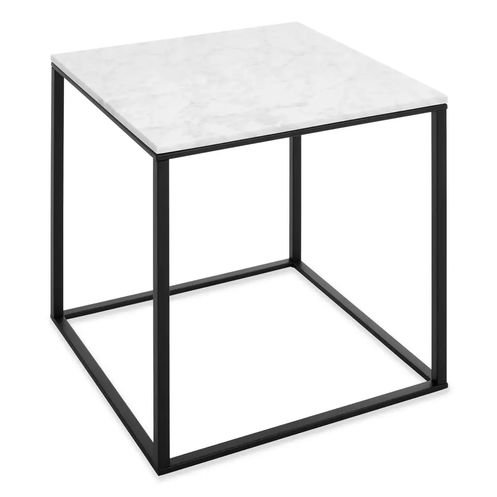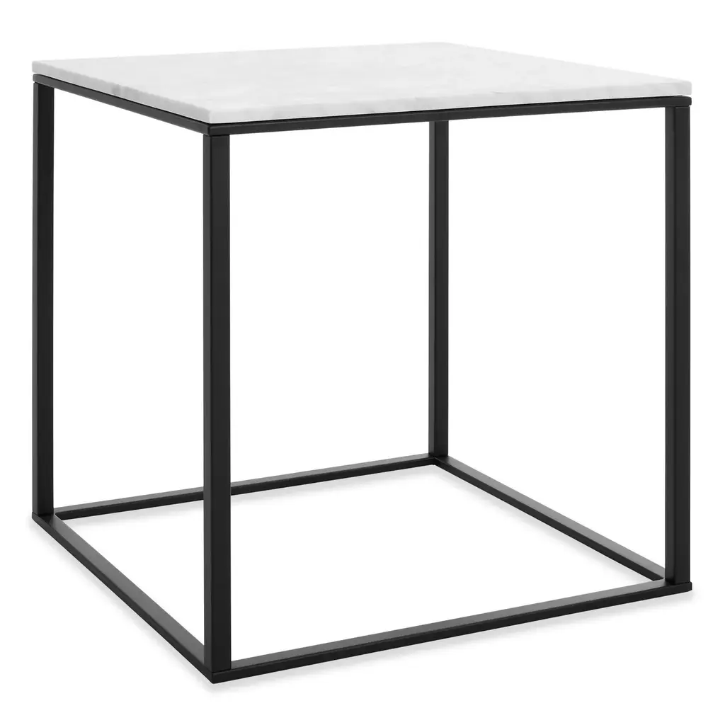 Nothing but the bare essentials here. Sublime stainless steel or powder-coated steel in white or black gently supports your choice of top. Select from Carrara marble, walnut and black mirror tops. Black mirror only available with black base.