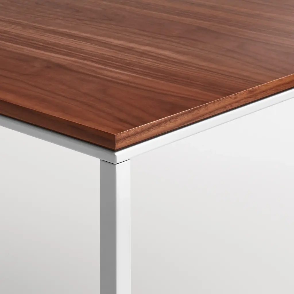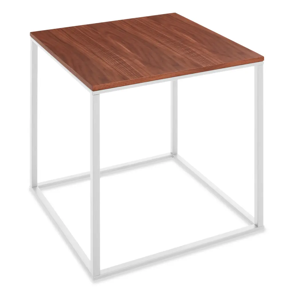 Nothing but the bare essentials here. Sublime stainless steel or powder-coated steel in white or black gently supports your choice of top. Select from Carrara marble, walnut and black mirror tops. Black mirror only available with black base.