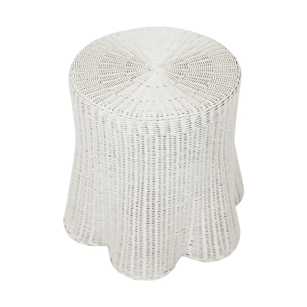 Infuse your living space with the effortless elegance of natural texture with this rattan skirted accent table. Crafted from handwoven, sustainable rattan, the table’s frame features a distinct scalloped design with gently flared wicker curves that cascade to the floor, mimicking the graceful flow of fabric. This standout side table serves as a striking centerpiece, perfect for enhancing the coastal vibe of your beach house or any organic modern space.