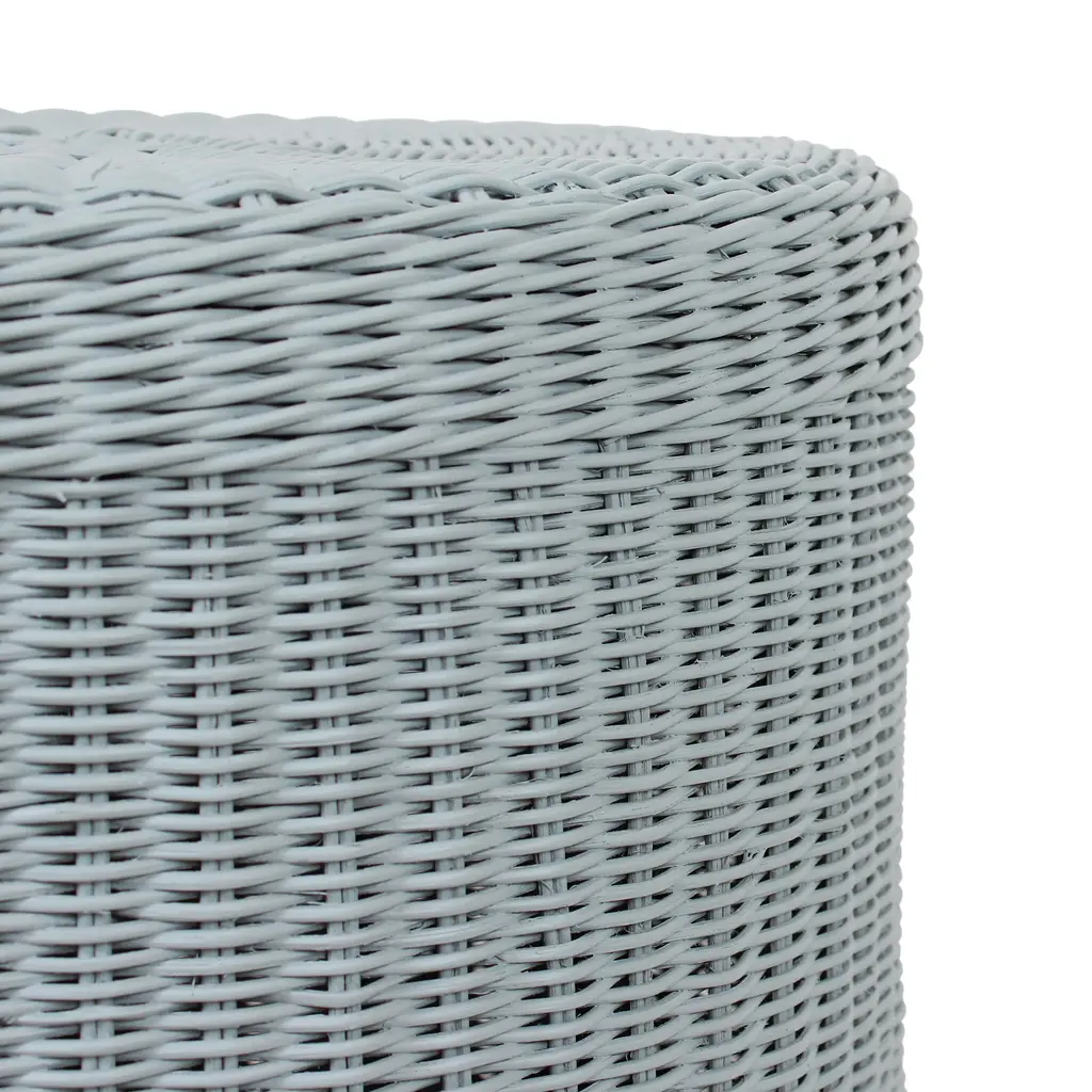 Mira Round Rattan Side Table With Scalloped Base - Blue