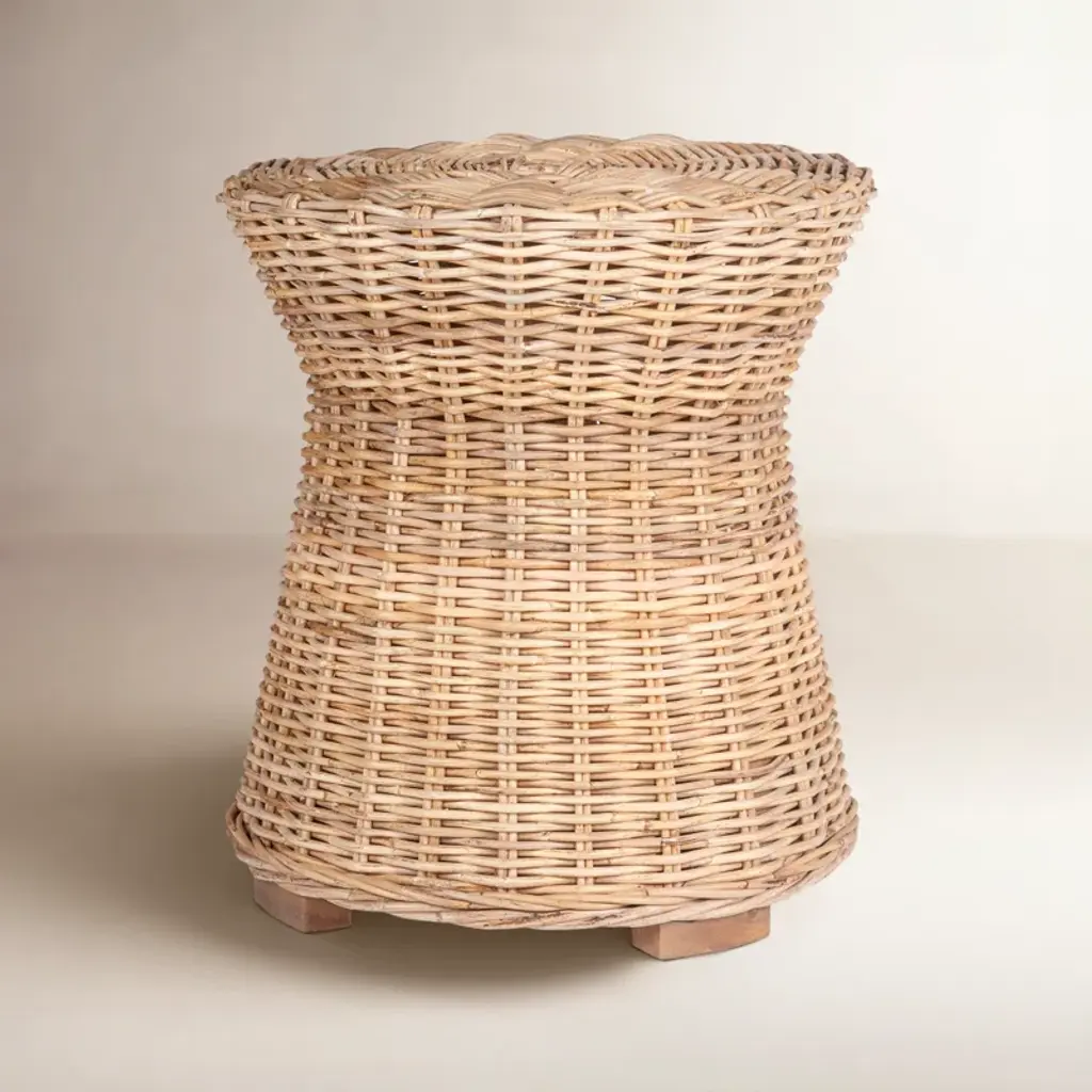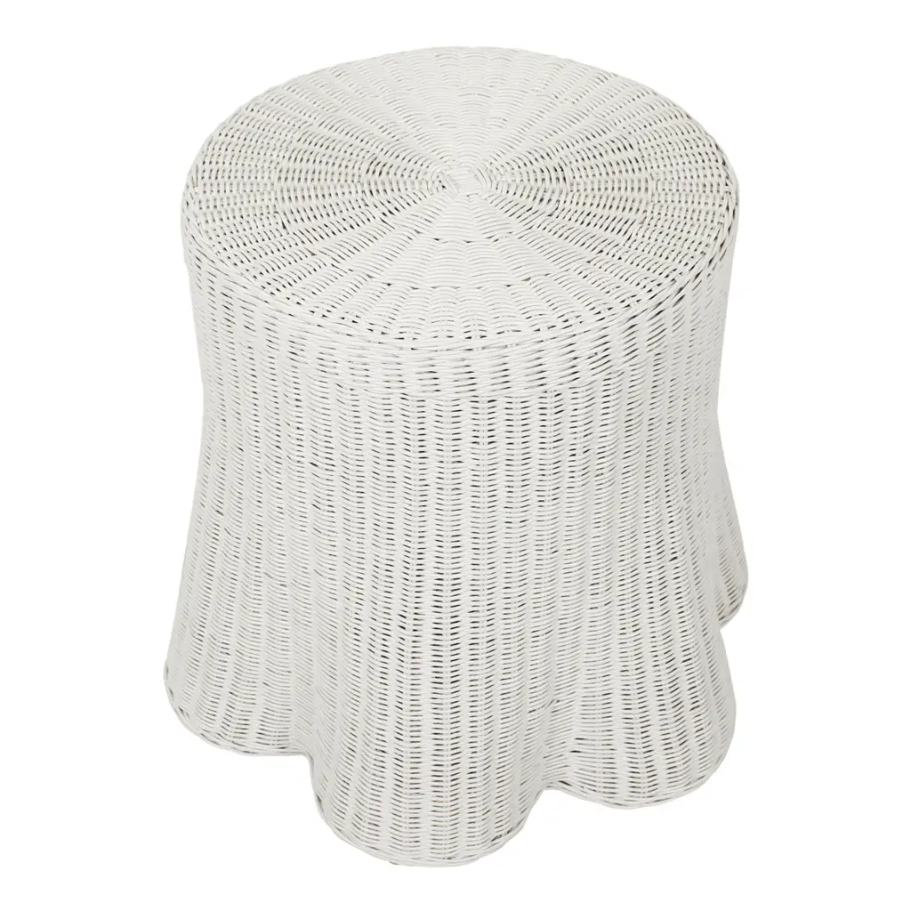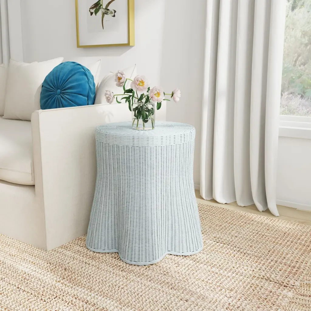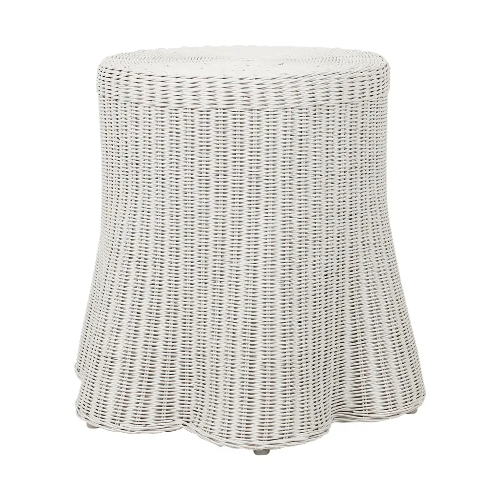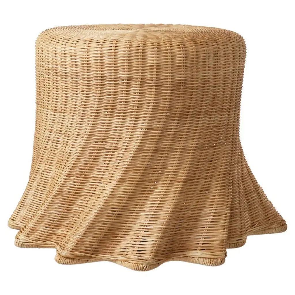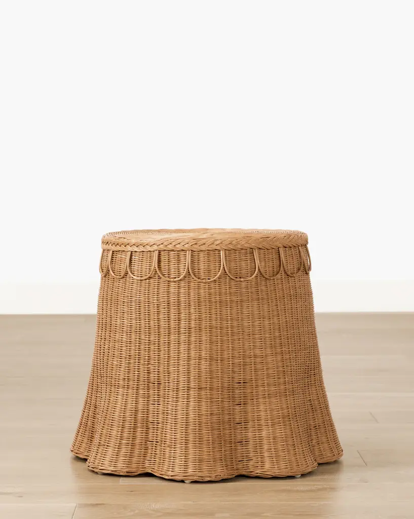 Infuse your living space with the effortless elegance of natural texture with this rattan skirted accent table. Crafted from handwoven, sustainable rattan, the table’s frame features a distinct scalloped design with gently flared wicker curves that cascade to the floor, mimicking the graceful flow of fabric. This standout side table serves as a striking centerpiece, perfect for enhancing the coastal vibe of your beach house or any organic modern space.