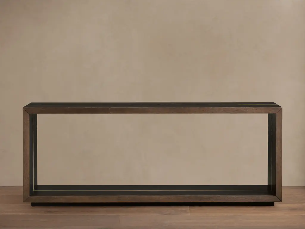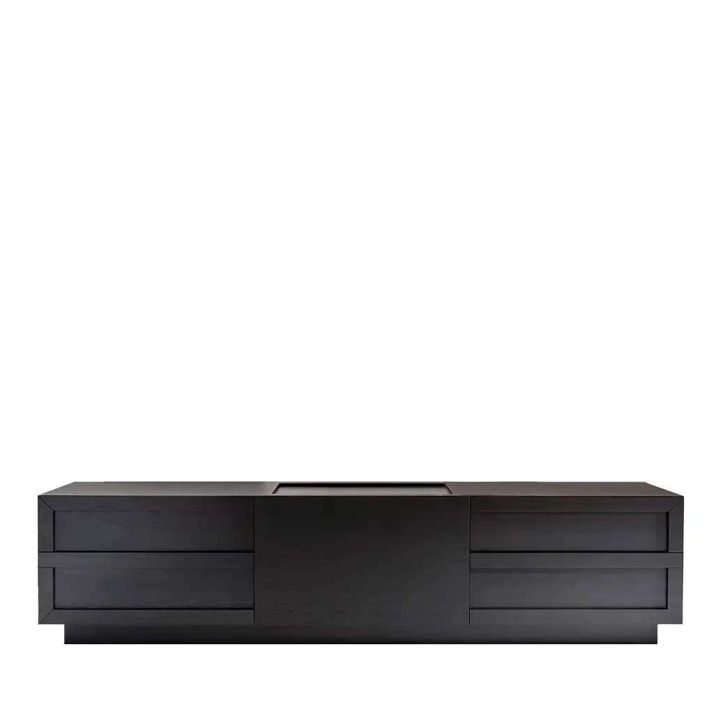 Curved side table in Madagascar figured Mowinghi veneer in high gloss polyester finish. Curved legs in satin black nickel stainless steel with lasered Giorgio Collection logo.