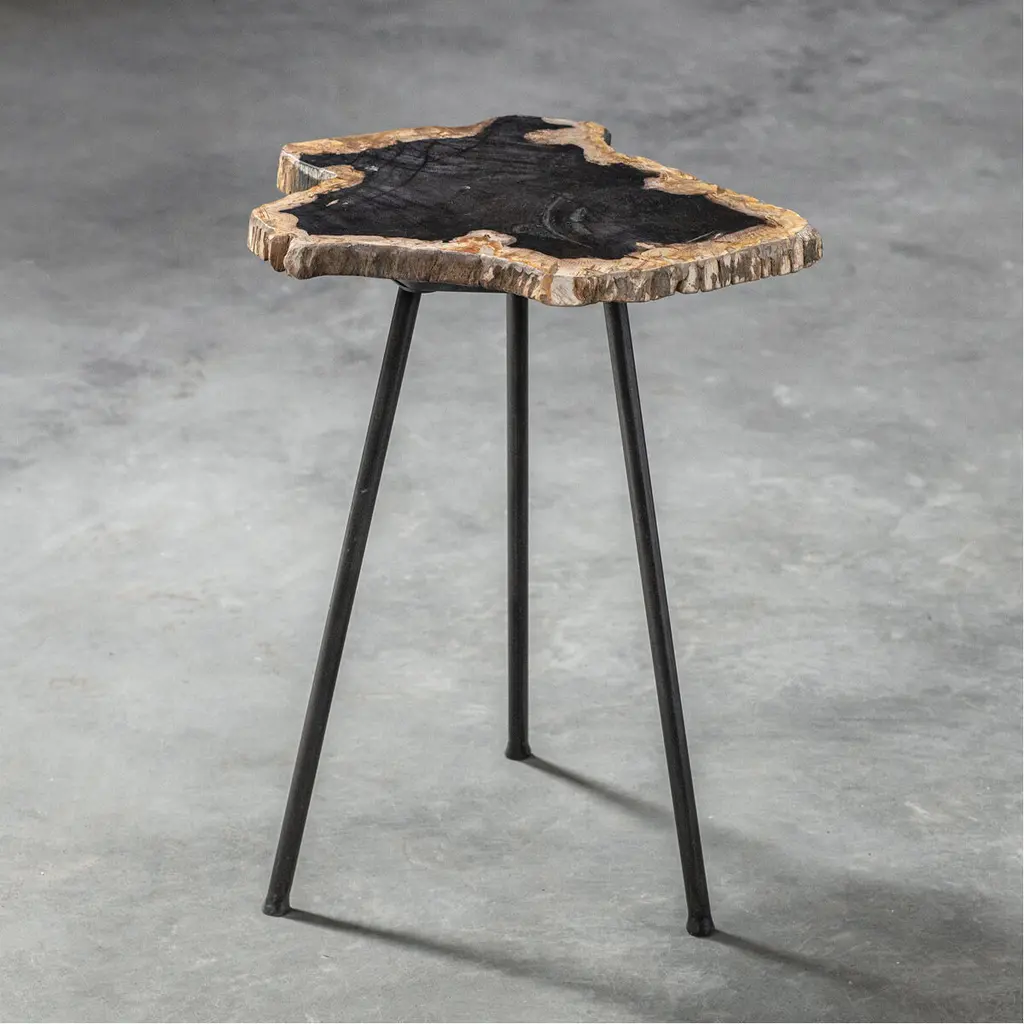 Mircea 20 X 16 Inch Natural Petrified Wood And Aged Black Accent Table