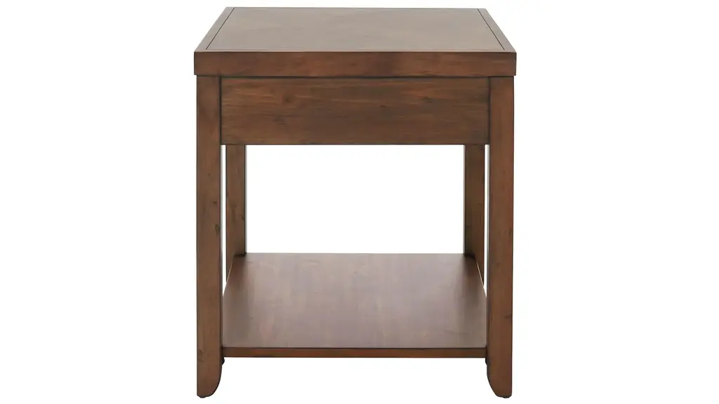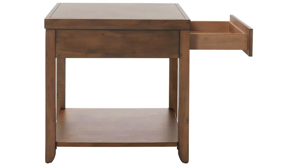 It may be an end table, but the Mitchell is the beginning of smart style! Characterized by a distressed finish, cedar veneers and antiqued brass knob hardware, you'll fall in love with how it looks in your living room.