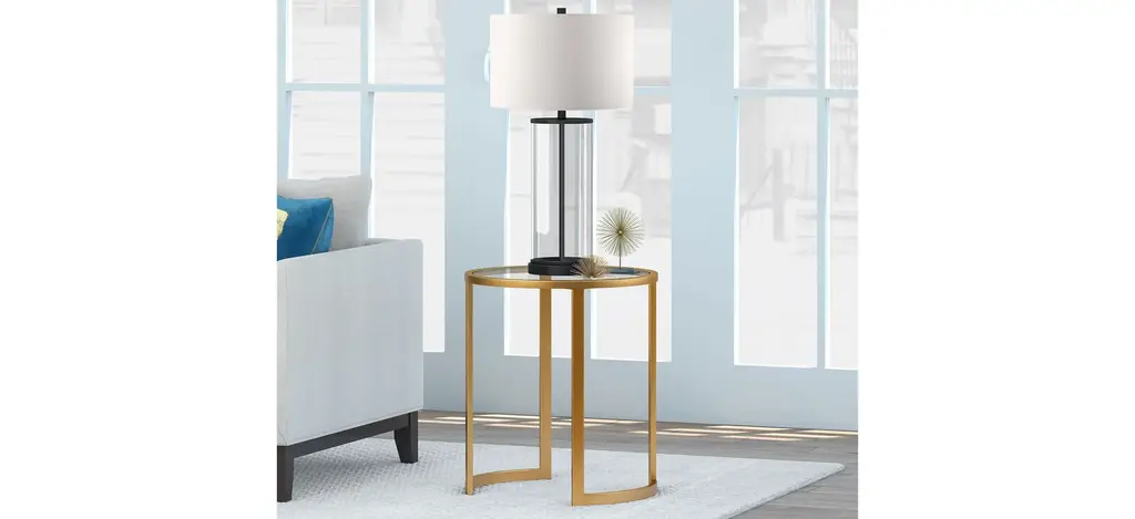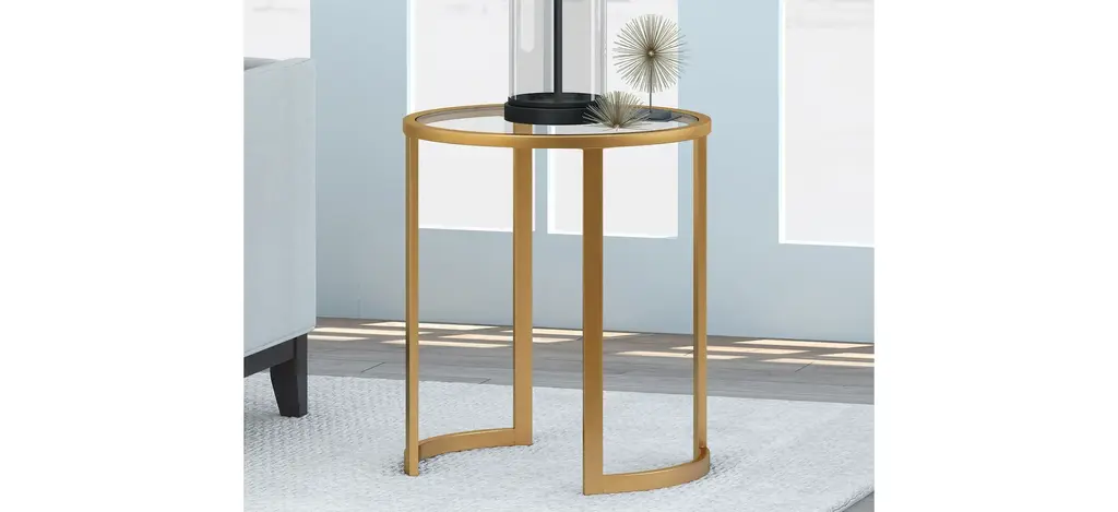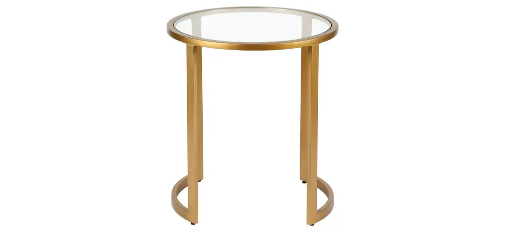This industrial display box styled Mitera side table features a seamless blend of function and design. Easy to style, the tempered glass top, metal shelf and brass finish make it the perfect addition to your living room or den ensemble.
