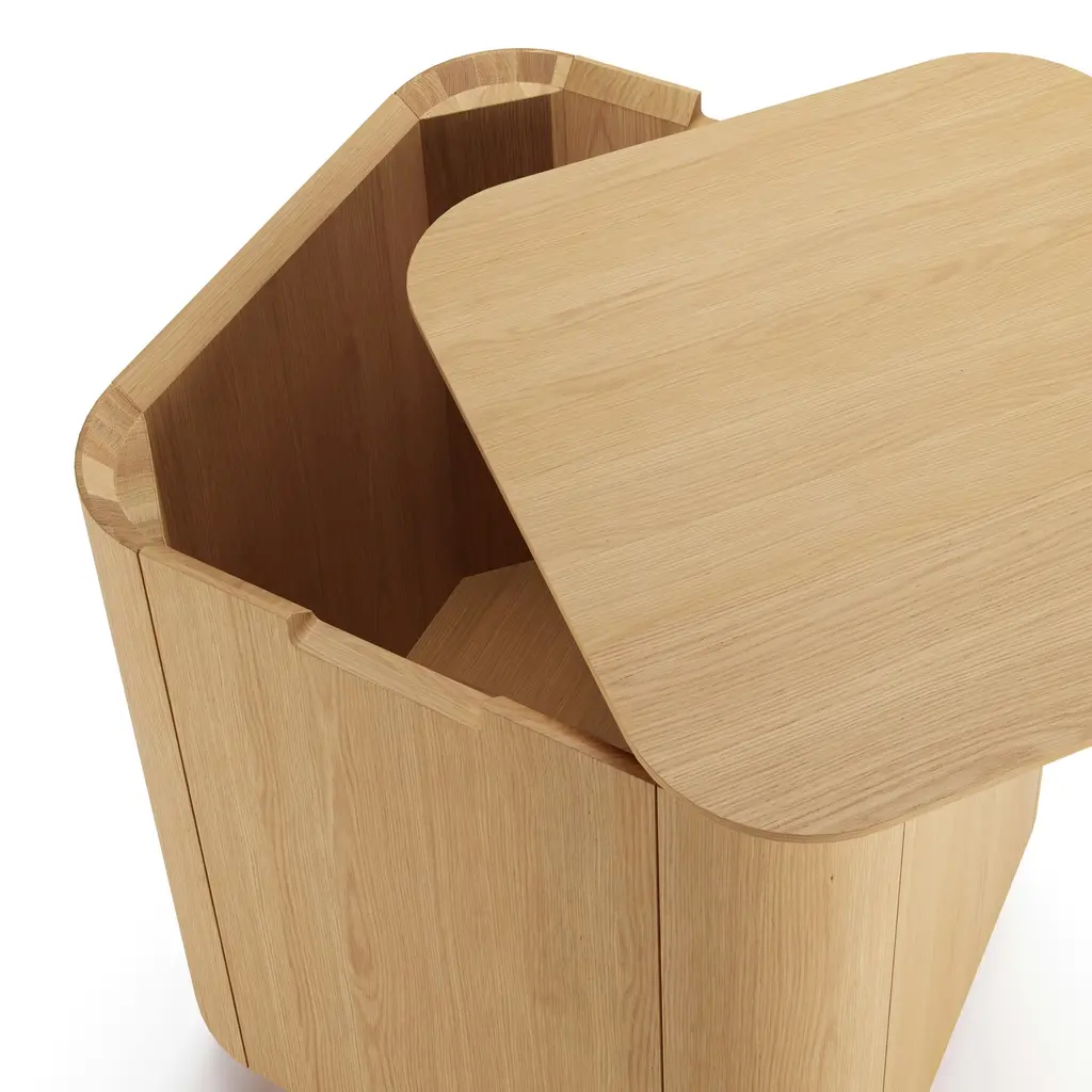 Appearances can be deceptive. On the outside, Moa is a refined, delicate piece of furniture, but on the inside Moa offers practical functionality. Its removable lid reveals a spacious storage area for whatever you may need to stash away. Set atop a solid wood plinth base, Moa perfectly combines elegance with practicality, making it an ideal choice for everyday family life.