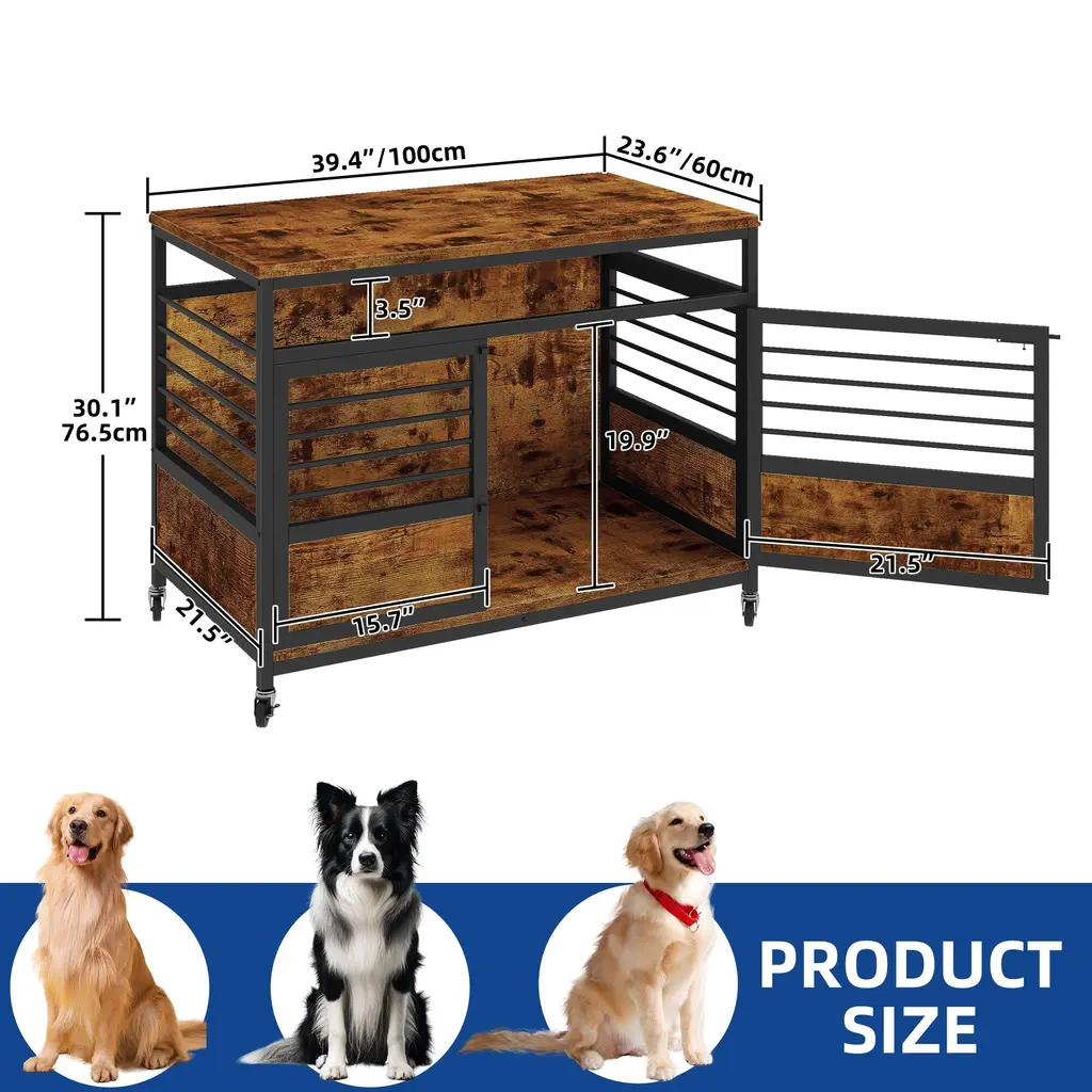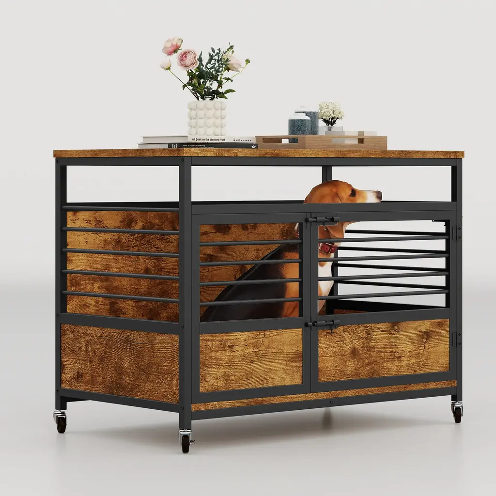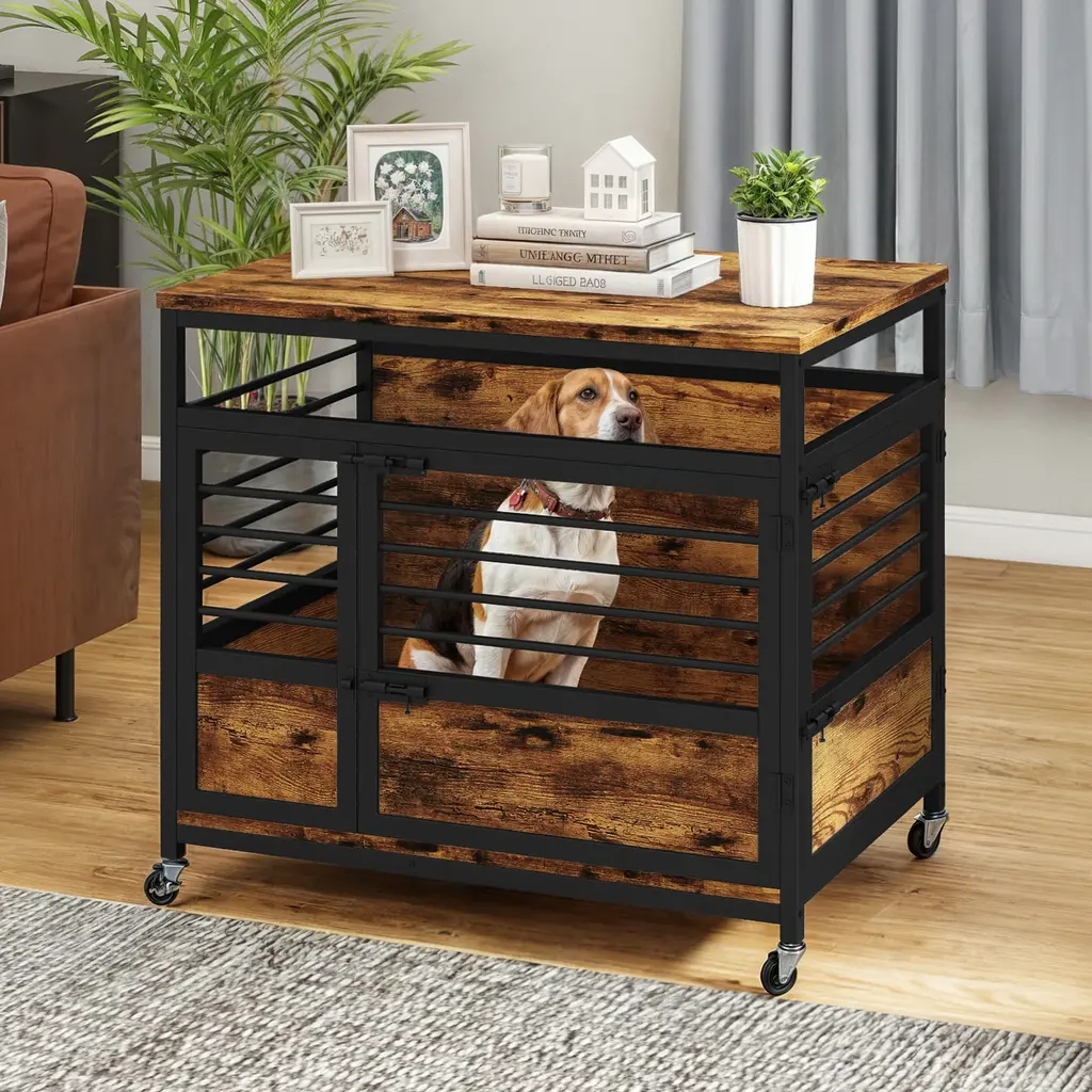 Moasis Dog Crate Dog Kennel Indoor Furniture End Table With Wheels - Large-39.4"l X 23.6"w X 30.1"h