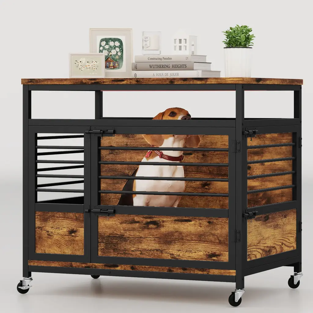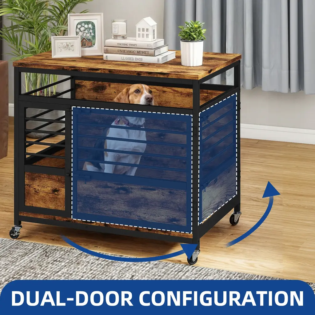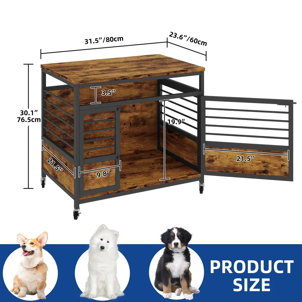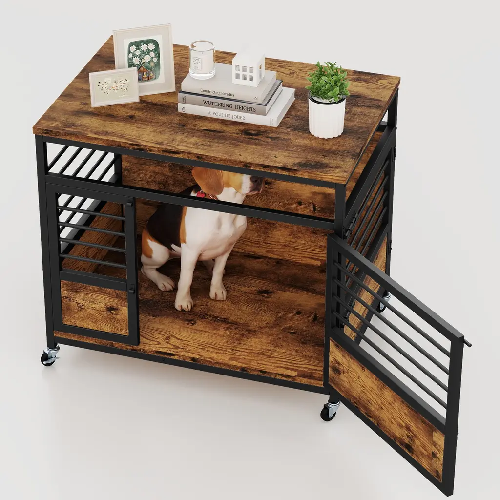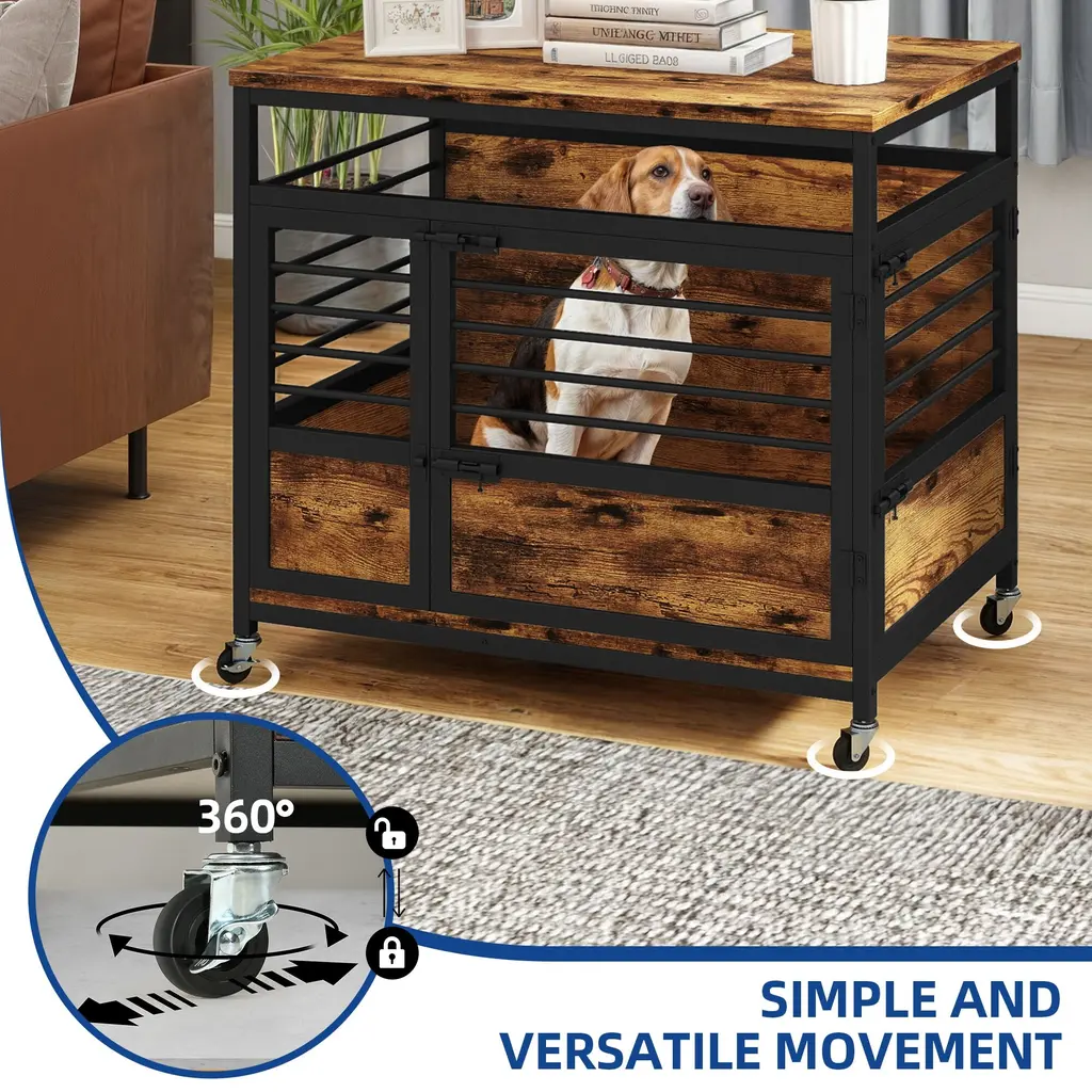 Moasis Dog Crate Dog Kennel Indoor Furniture End Table With Wheels - Medium-31.5"l X 23.6"w X 30.1"h