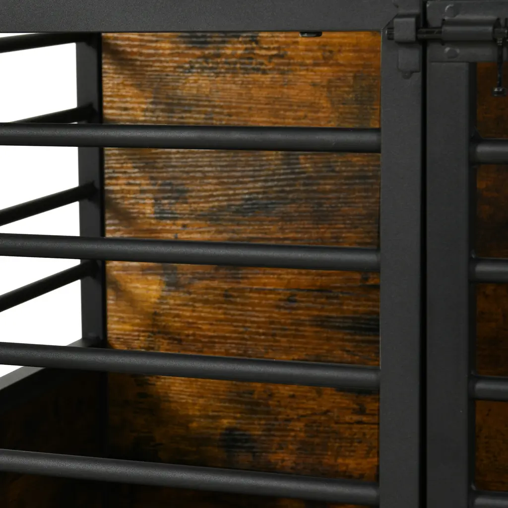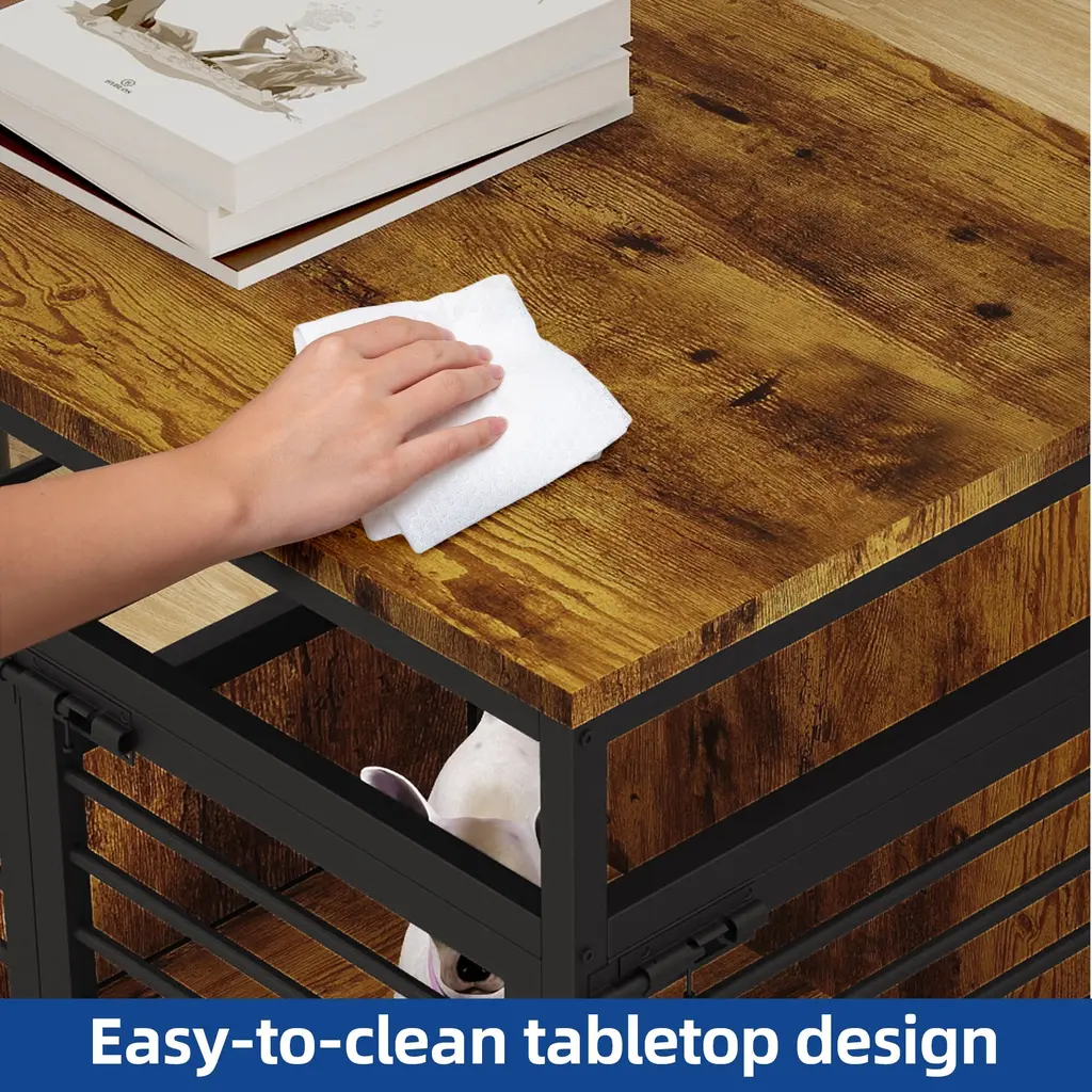 Meet the Furniture Style Dog Crate, a stylish and functional addition to your living room that doubles as a chic coffee table. This innovative dog crate furniture is designed to save space while offering a comfortable retreat for your pet. With its open-top design, it provides a comforting oasis for your dog, allowing for gentle interaction and improved airflow. The crate's durable construction, featuring rugged metal iron pipes, ensures it can withstand even the most enthusiastic chewers. Plus, the crate is easy to move with four casters, making room rearrangements a breeze. Assembly is a snap with included accessories and clear instructions, and the crate comes with a safety lock switch and lockable wheels for added security and convenience. Choose from three sizes to find the perfect fit for your furry friend. Features: Product Information: