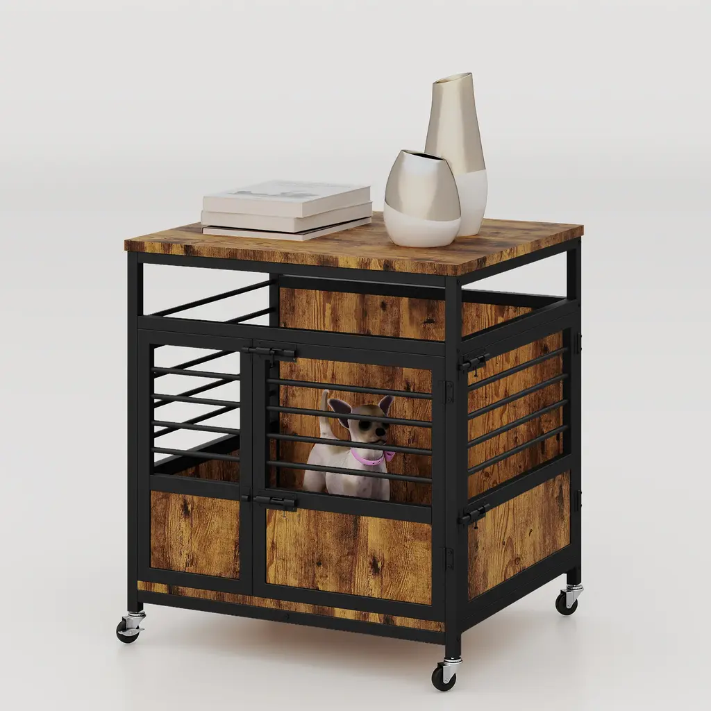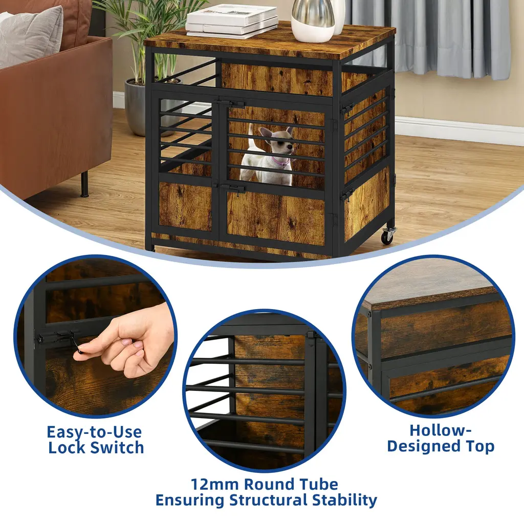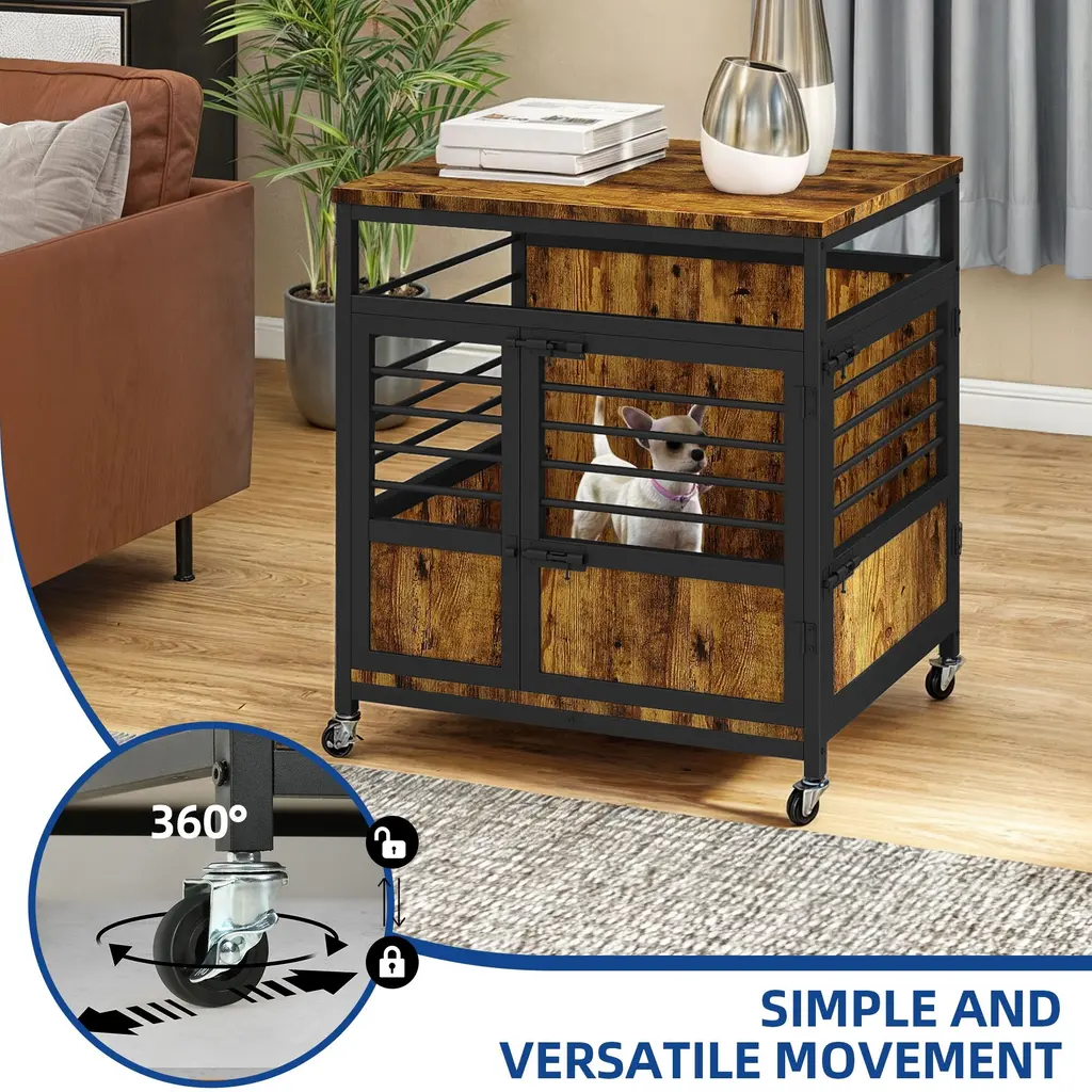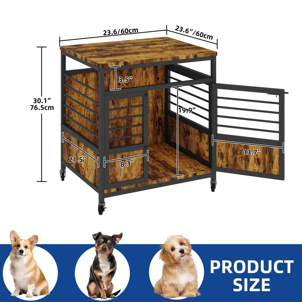 Moasis Dog Crate Dog Kennel Indoor Furniture End Table With Wheels - Small-23.6"l X 23.6"w X 30.1"h