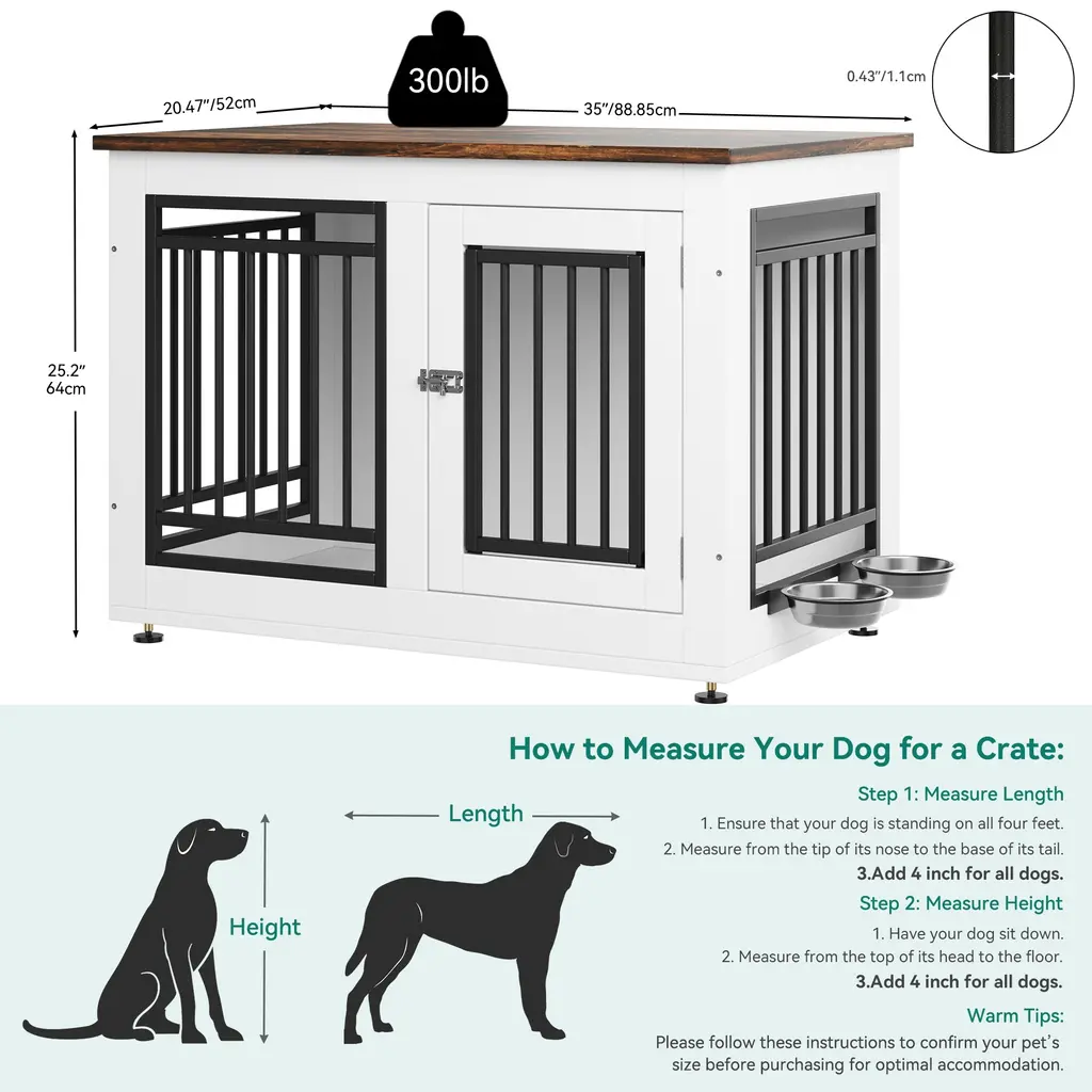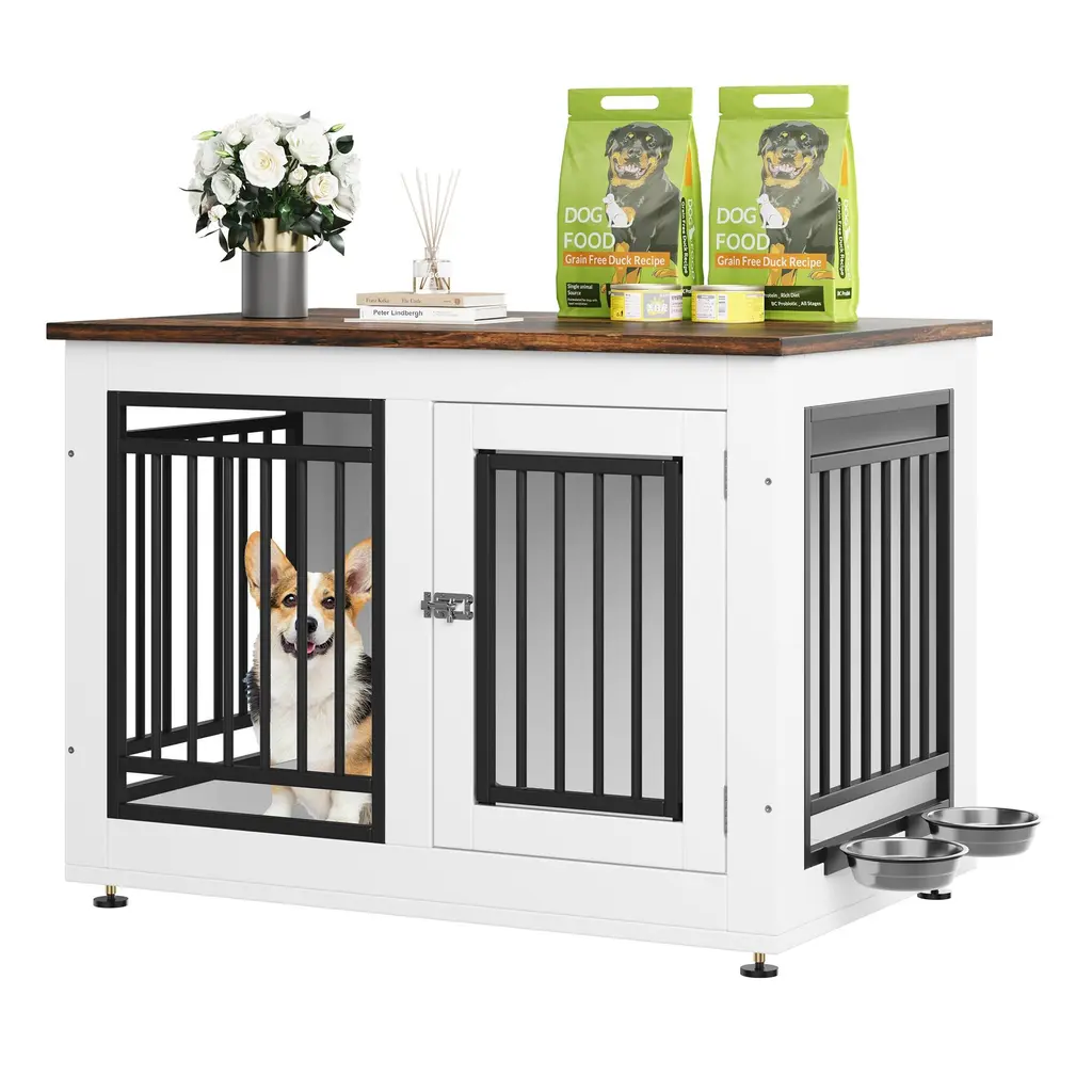 Moasis Dog Crate Furniture, End Table With Feeding Bowls - Medium