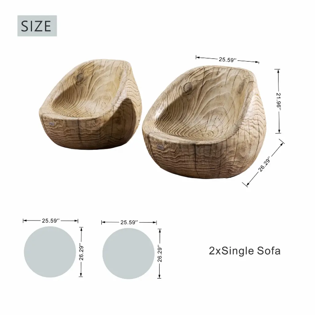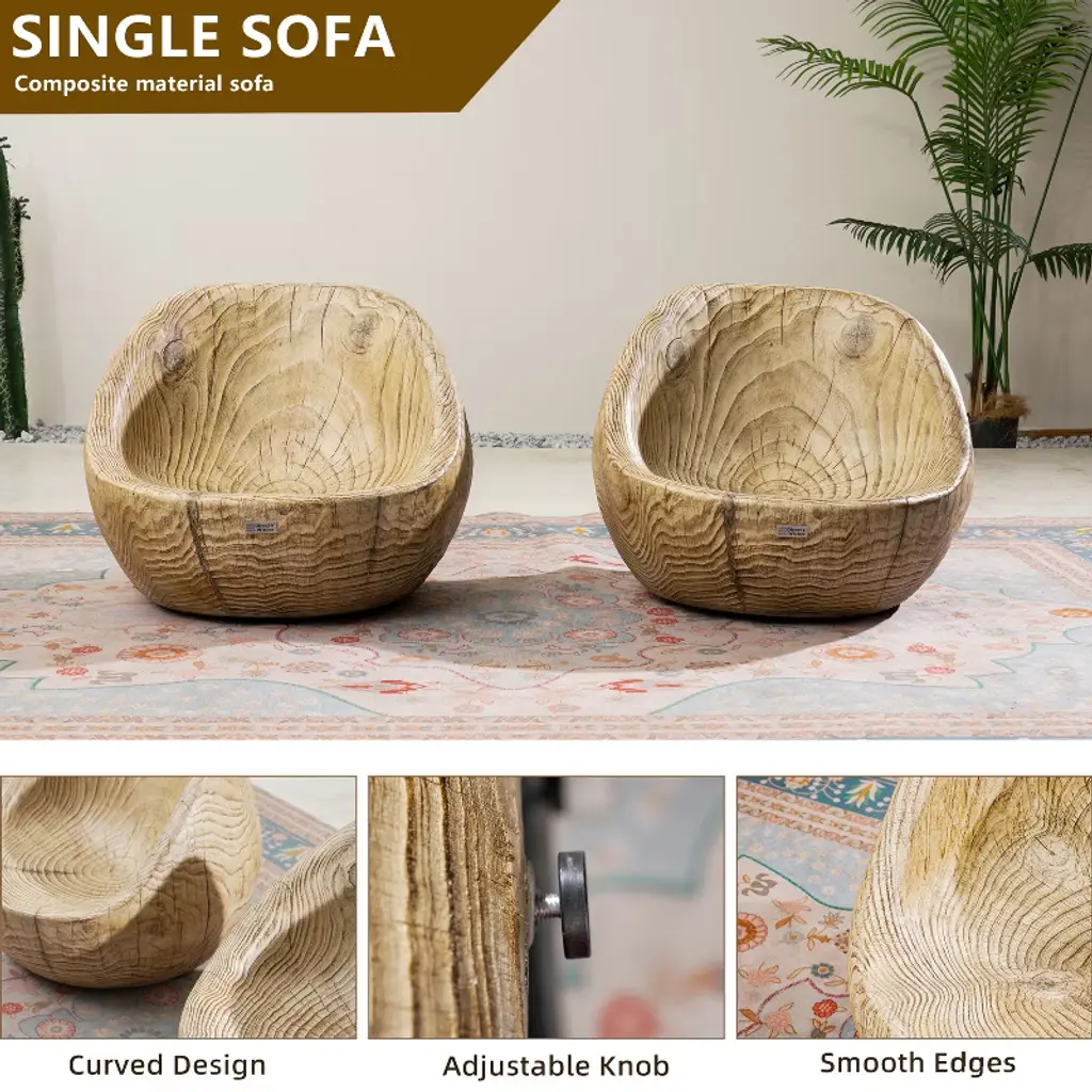 Enjoy the rustic charm of wood without the maintenance with this 3-piece outdoor conversation set, crafted from innovative Terrafab composite material. Designed to mimic the natural texture and grain of real wood, this set includes two sculptural lounge chairs and a coordinating side table—perfect for cozy outdoor chats, reading, or entertaining. Made for outdoor durability, the Terrafab material resists weather, UV rays, and moisture while remaining lightweight and easy to move. The natural wood-look finish brings a warm, organic touch to any garden, balcony, or patio.