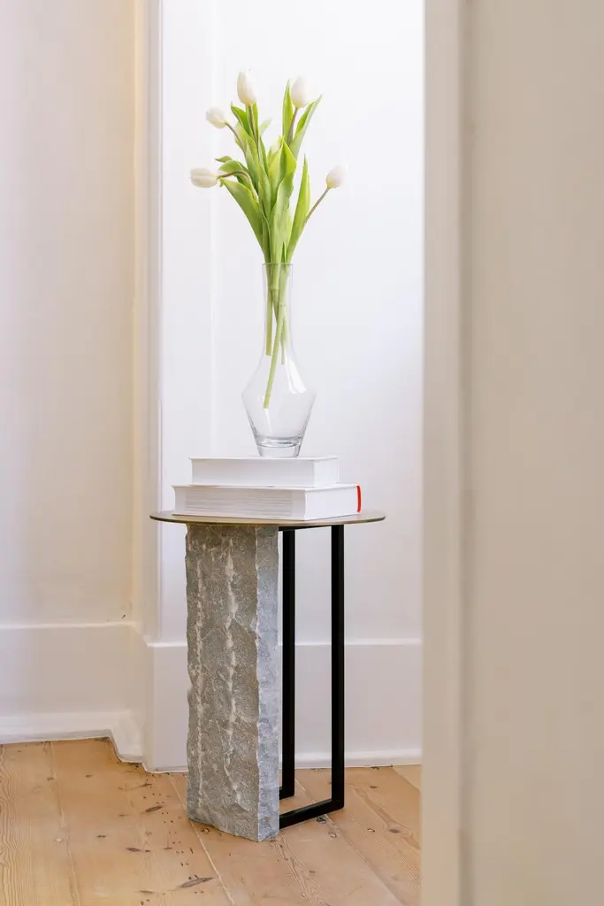 Aire Side Table, Contemporary Collection, Handcrafted in Portugal - Europe by Greenapple.Designed by Rute Martins for the Contemporary Collection, the Aire marble side table features a bold and distinctive design, seamlessly complementing contemporary spaces. Its irregular and organic aesthetic, inspired by the captivating Grutas de Mira de Aire, redefines concepts of sophistication. Crafted from exquisite materials, this marble side table easily becomes the centrepiece of today’s living interiors, capturing attention from the first encounter.Aire Side Table Material CodesFI007 Black lacquer; satin finishME032 Oxidised brass; matt finishST056 Bardiglio marble; matt finishHandcrafted in Portugal - Europe by GreenappleUnique by design, Crafted by peopleFounded in 2005 by Sérgio Rebola and Rute Martins, Greenapple designs and produces in-house luxury furniture for exclusive customers worldwide.Our own in-house production facility allows us to be obsessed with detail, and gives us the freedom to dedicate ourselves to the most demanding tailor-made and customized work. As Rute designs all the unique pieces, Sérgio assures the high-quality standards through the whole process - from design to production; from production to your home. Fine craftsmanship, whether perfected by experienced hands or state-of-the-art machinery is quintessential in delivering top quality experiences.