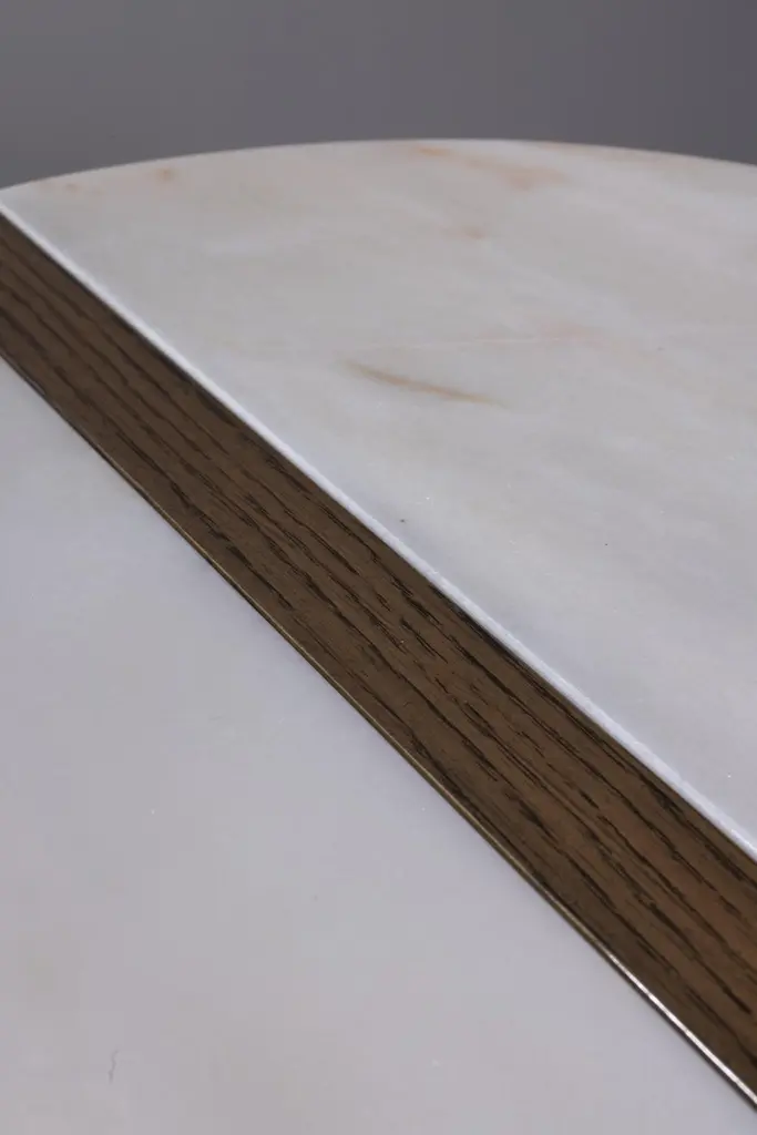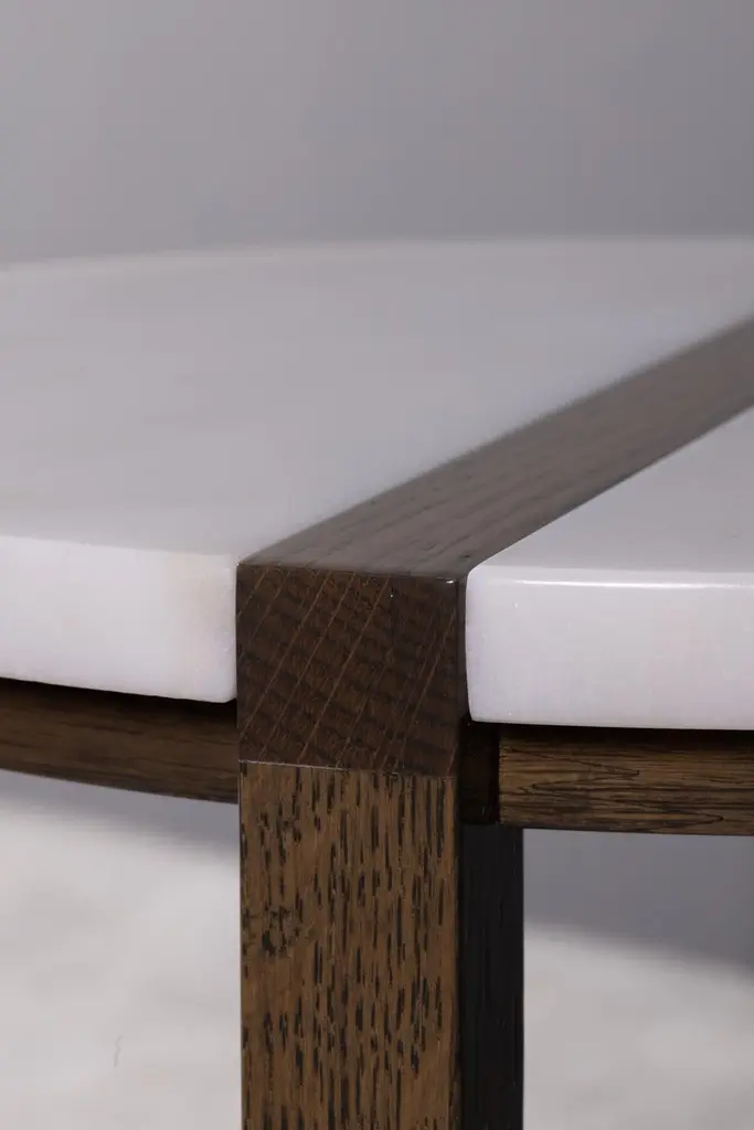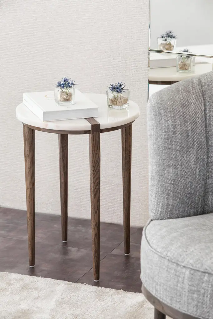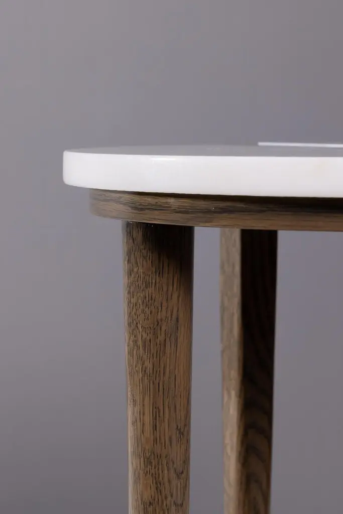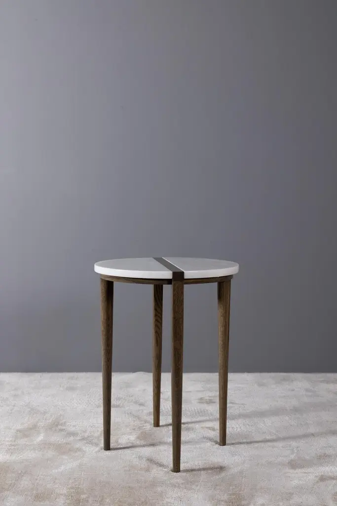 Modern Alaíde side table, Handcrafted in Portugal - Europe by Greenapple.The elegant and refined Alaíde side table is a real eye-catcher for any interior in which it is placed. As the table top made of Calacatta Bianco marble sits perfectly on the thin legs made of anthracite stained American oak, the result is an elegant and at the same time imposing side table.The inlaid detail in American oak on the tabletop combines the contrast between textures and materials.Alaíde side table material codesWD049 American Oak; charcoal colour stained; high-gloss finishST008 Calacatta Bianco marble; polishedHandcrafted in Portugal - Europe by GreenappleUnique by design, Crafted by peopleGreenapple transforms contemporary spaces into exclusive narratives of design and craftsmanship. From custom-made furniture to bespoke interiors, each creation is a timeless work of art, shaped by master artisans who honor centuries-old techniques.Founded in 2005 by Sérgio Rebola and Rute Martins, Greenapple has earned global recognition among high-end clientele and leading design firms. While Rute designs each unique piece, Sérgio ensures uncompromising quality from design to production and from production to your home. We provide a seamless experience, offering short production lead times, worldwide delivery within 7 to 10 days, and white-glove service upon request.For U.S. clients, we can handle customs clearance, and offer white-glove service as well upon request.