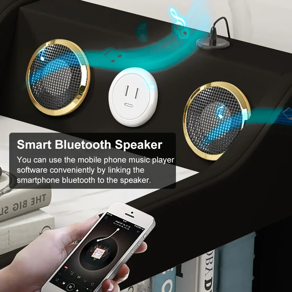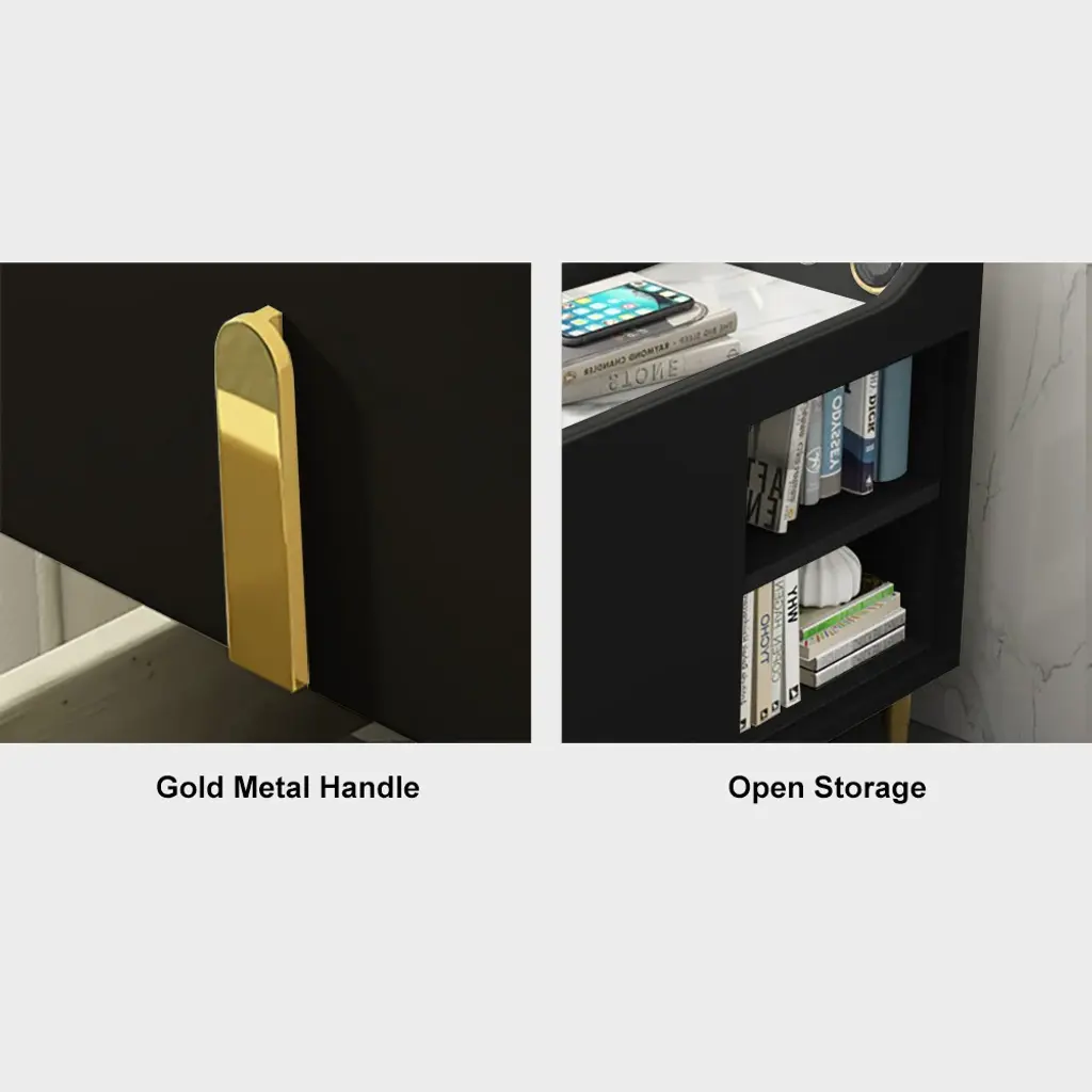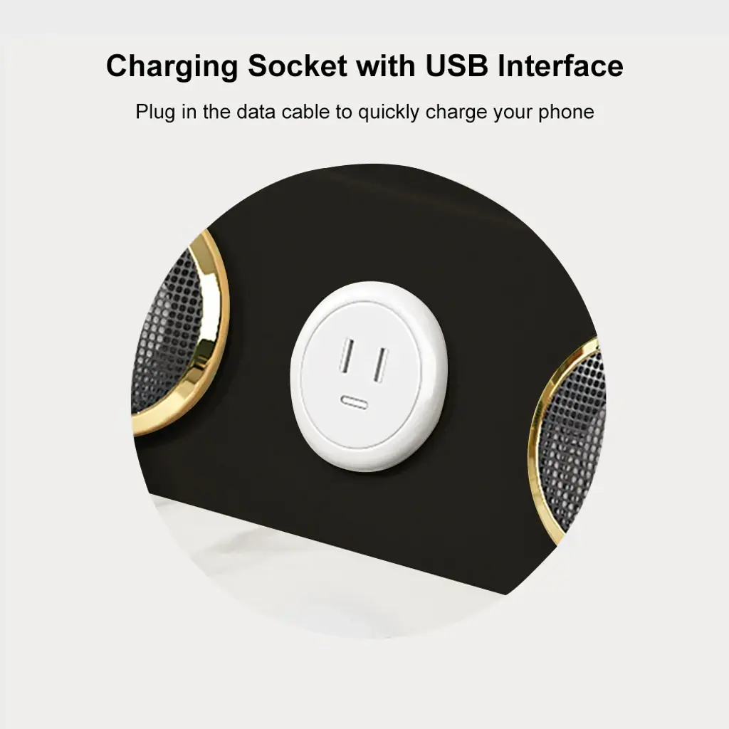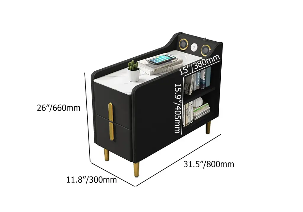 Modern Black Narrow Side Table Sintered Stone Top End Table Speaker & Usb Port