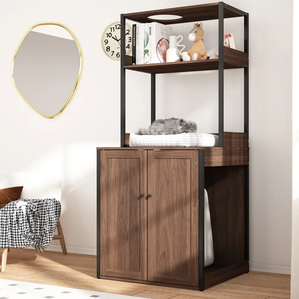 Sleek and multifunctional, this beige narrow side table exudes modern elegance with a white sintered stone top, PU leather body, and golden steel legs. Complete with drawers, shelves, built-in speakers, and USB ports, it transforms small spaces into chic, organized retreats.