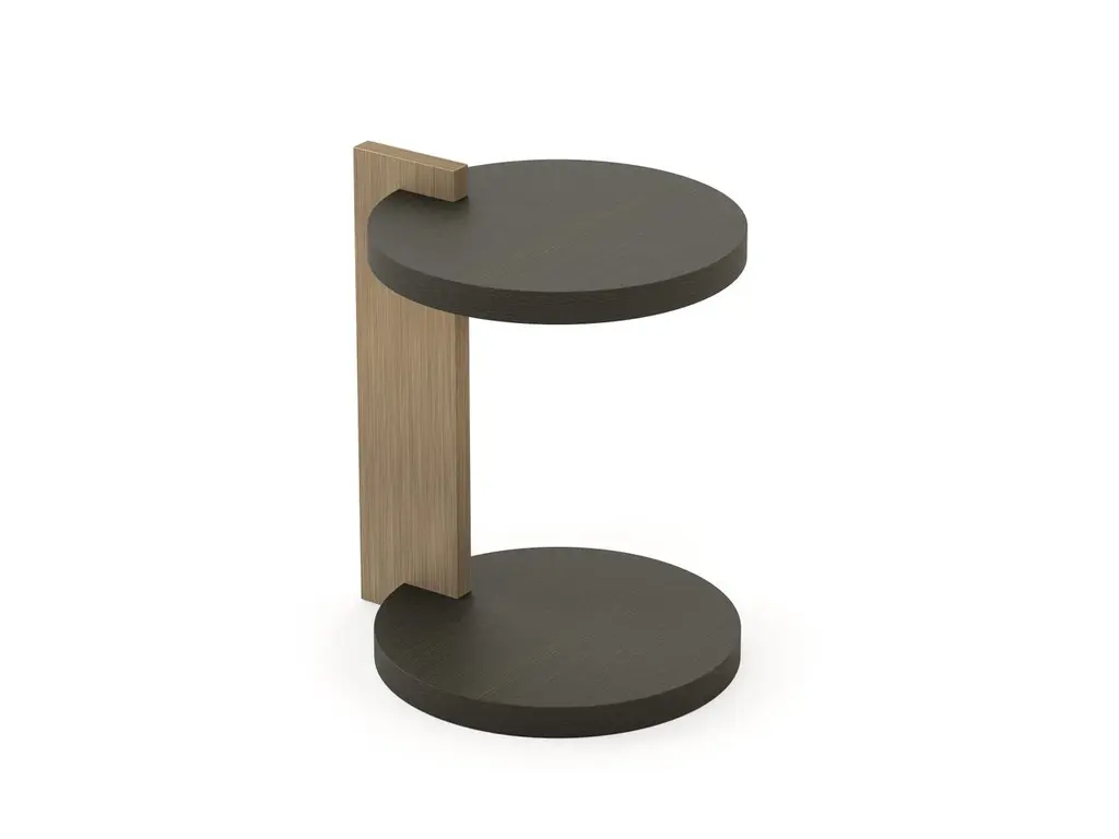 The Club collection is inspired by exclusive clubs devoted to socializing among privileged members. In order to create functional areas that serve the purpose of a club, this collection features pieces in which the focus is flexibility, without losing sight of luxury, elegance and exclusivity.A contemporary design piece, the Club side table stands out for the round profile of the tops and the brass bronze structure. The finish of the tops in mate blackened oak follows the aesthetic line of the rest of the Club range. Discreet and practical, the Club side table reflects the essence of a Minimalist home with elegance. The bronze brass details on the structure lend a sophisticated atmosphere to your living room. Customisable in materials and finishes, this piece ensures a casual yet luxurious look to your spaces. Ideal for environments with a light and tranquil aura, in a more modern look. As the product can be personalised, the image of the presentation is merely illustrative.Notes: Structure in metal (iron, stainless steel or brass) - Price on requestPossibility of marble and glass tops - Price on request.