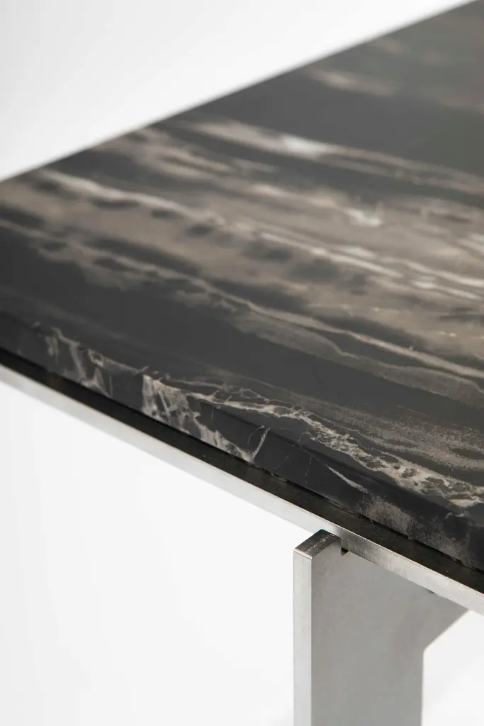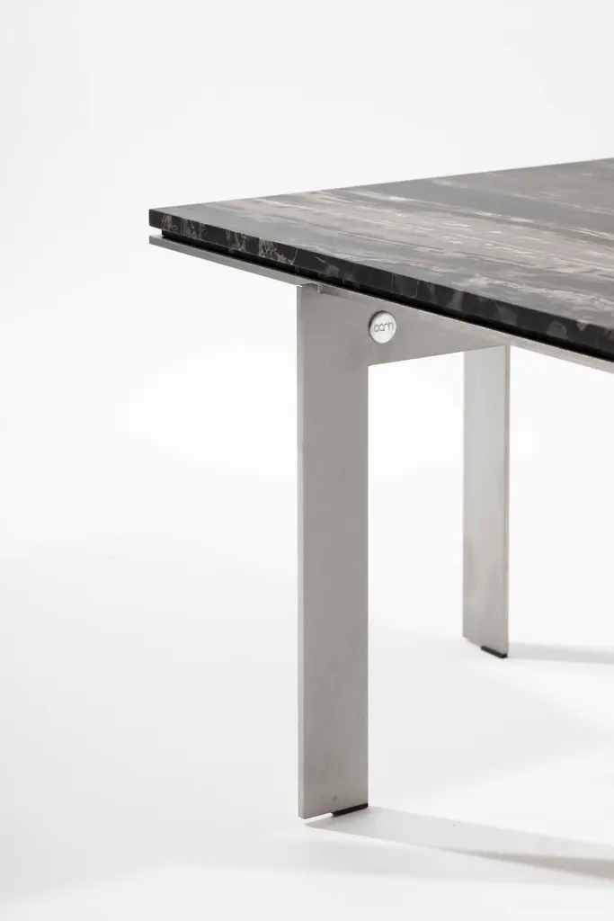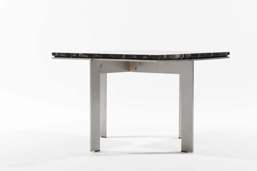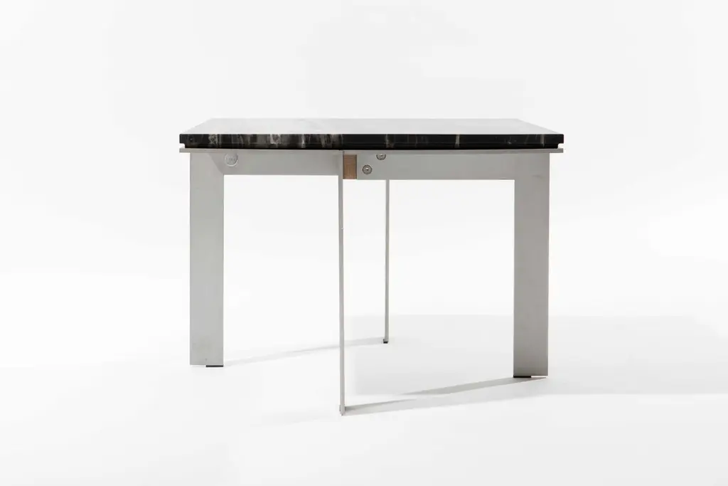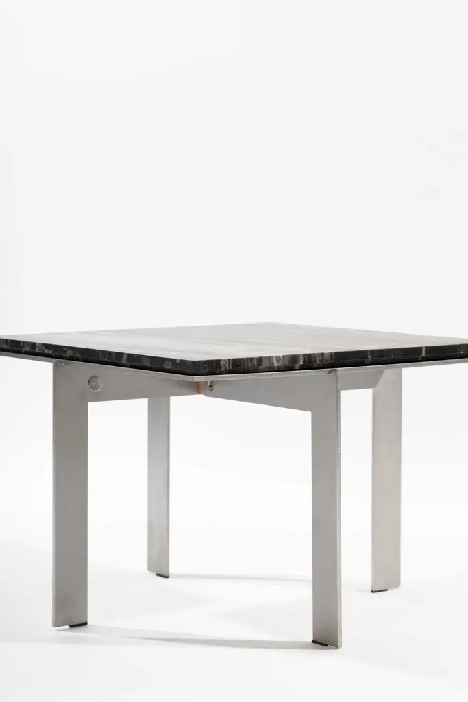 Modern Contemporary Square Side Table, Stainless Steel & Marble, Belgium