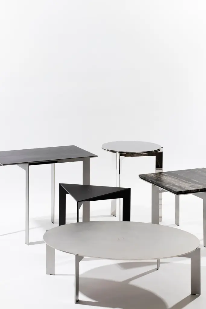 Joined is a collection of side tables. The name speaks for itself. The tables have one thing in common, they all exist around a crucial part, the joint, keeping all pieces together. Available in many shapes and materials. Every model can be finished with a top of choice.This version: Joined T34.3 triangular side table with black coated stainless steel base.Barh is a high-end furniture and objects brand, known to combine the finest materials, design details and fine craftsmanship in unique creations, build for those who want to grant themselves something unique, extraordinary. Core values are subtlety and elegance as pinnacles of beauty. Contemporary, distinguished and timeless.Distinct, unique pieces, made with the finer materials and crafted one step beyond perfection. Guaranteeing an investment in exclusivity is exactly what will be supplied, a feeling of connected individuality and uniqueness.