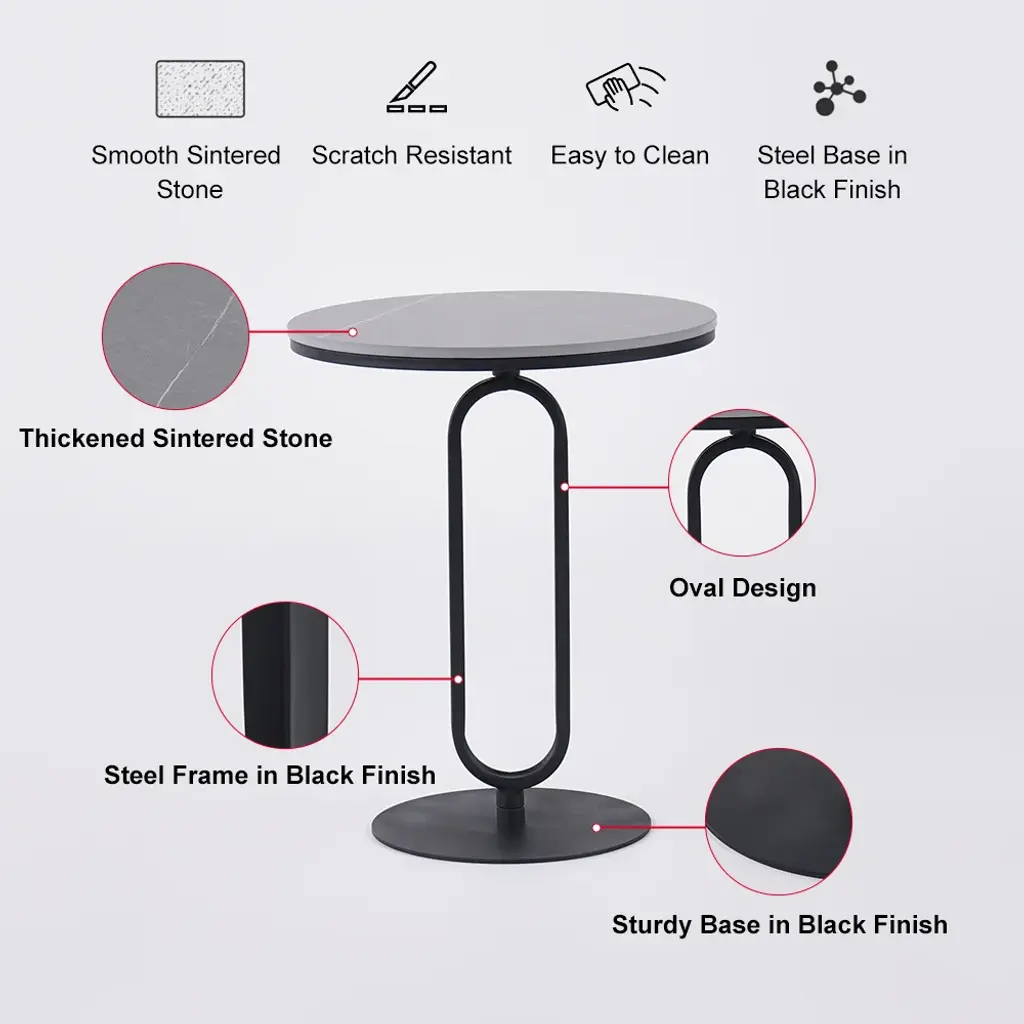 Add a stylish look and minimalist appeal to your home with this Sintered Stone end table. Featuring a round Sintered Stone tabletop, this end table offers ample storage for books, remotes, and other small items. Crafted from Sintered Stone and carbon steel, this side table ensures sturdy support and durable use for years to come. A stunning addition to your update on your home!