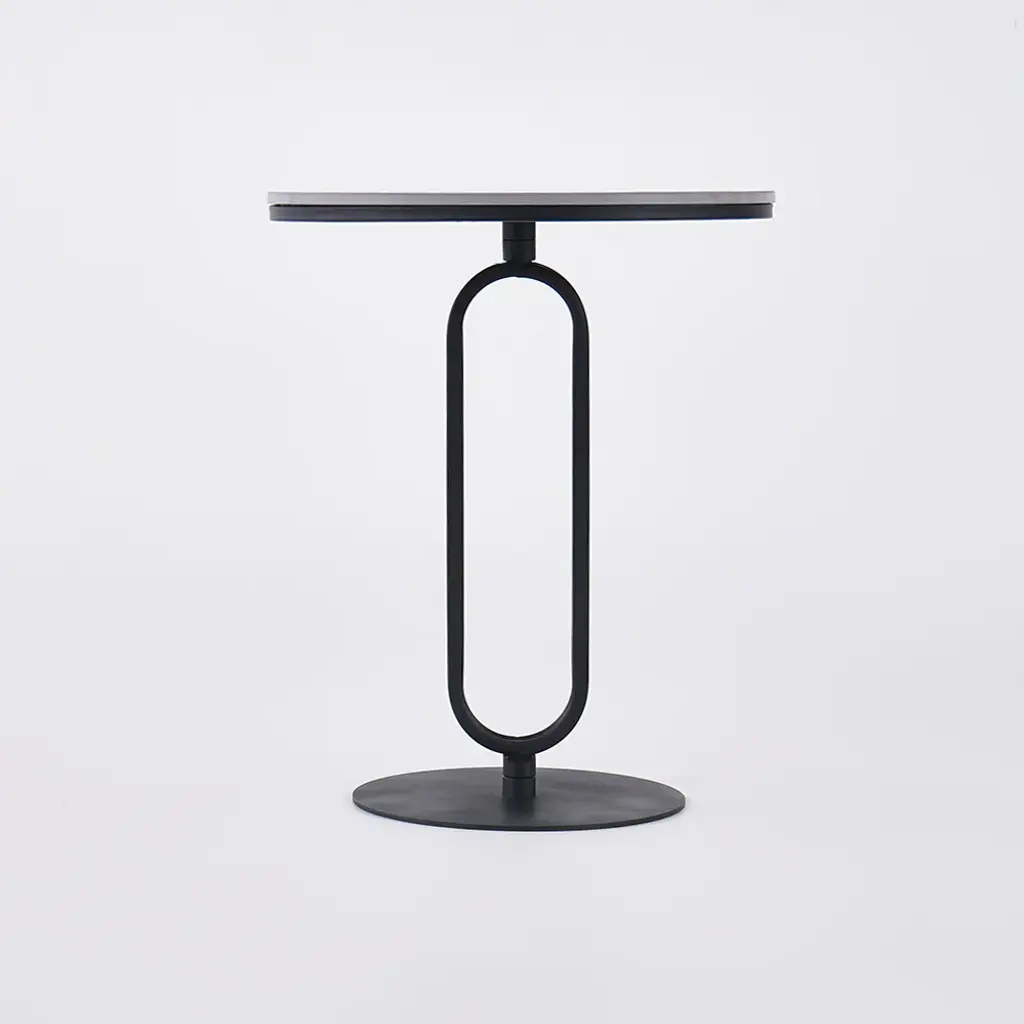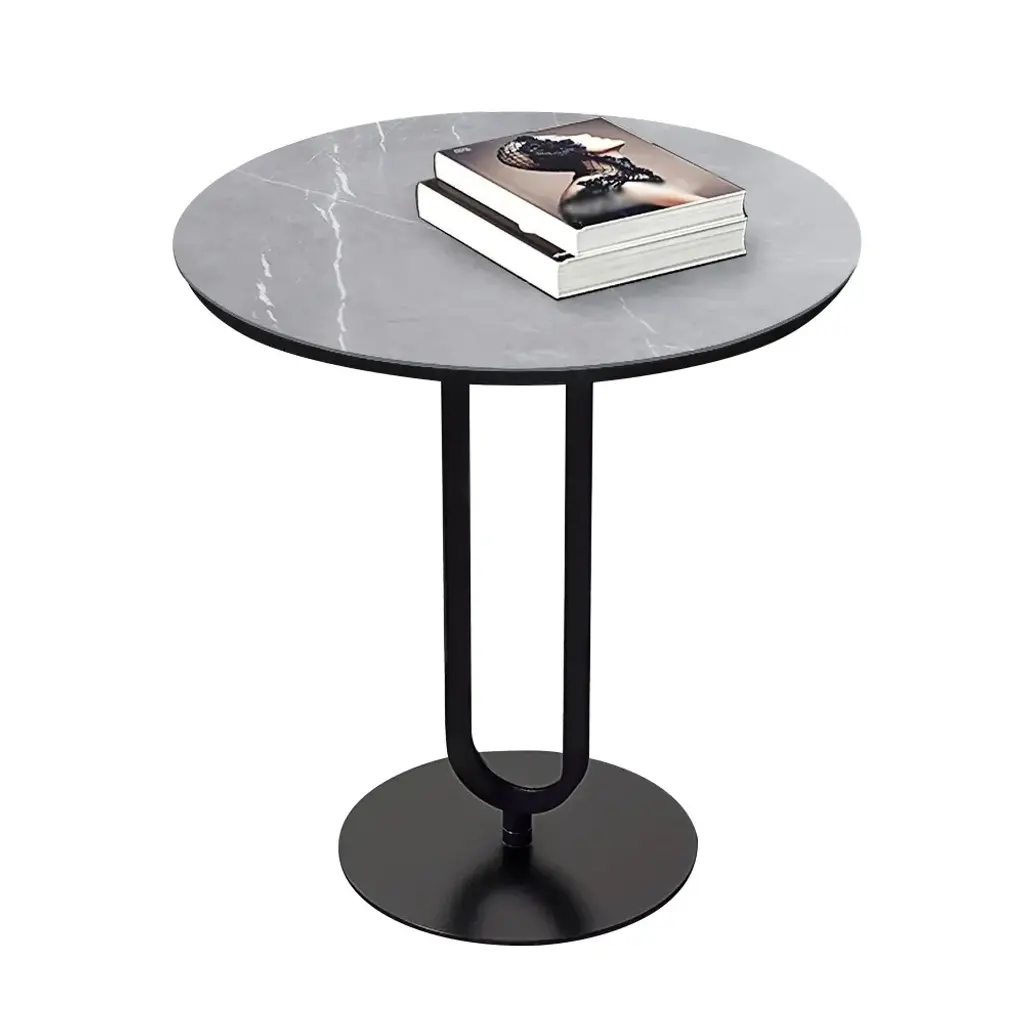 Modern Dark Gray Sintered Stone End Table Round Side Table Carbon Steel Base