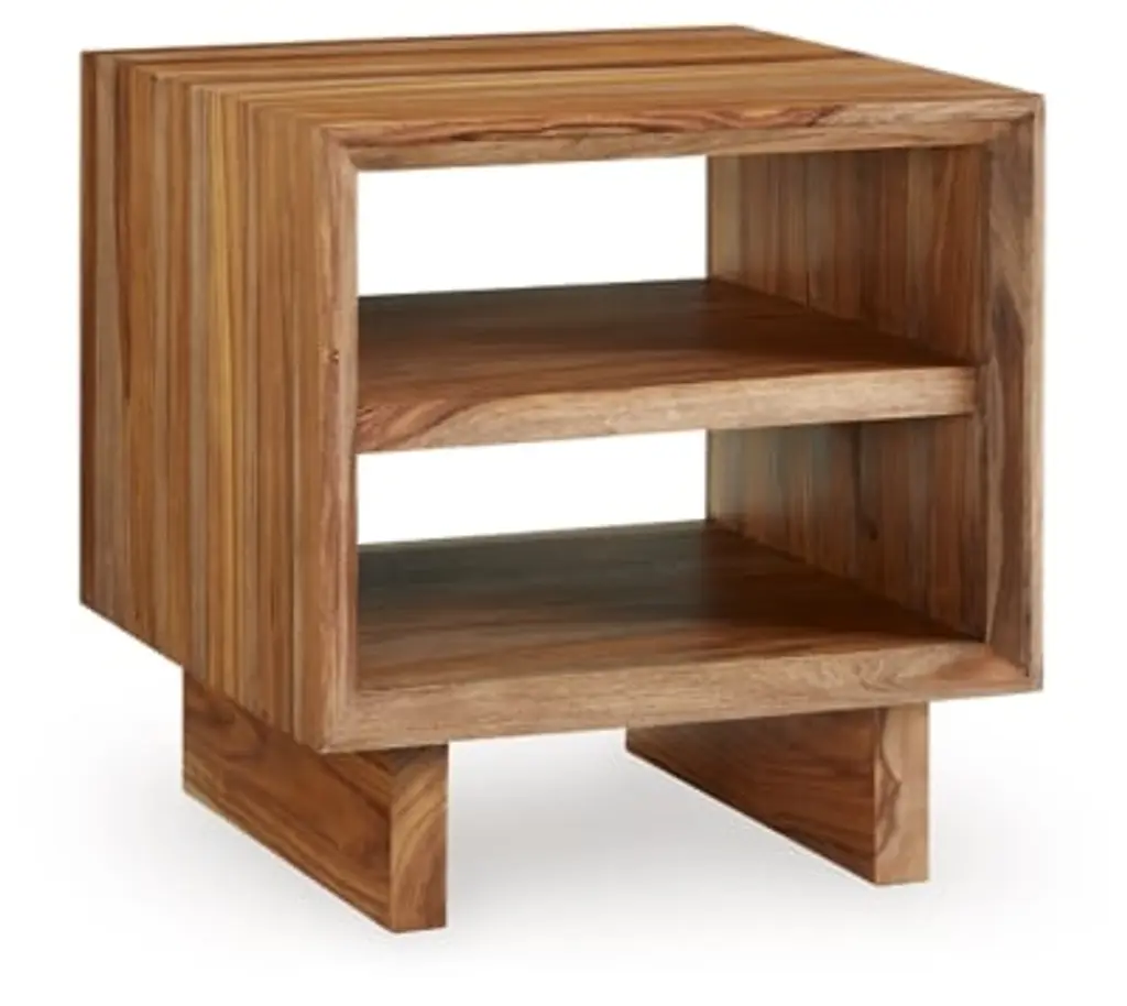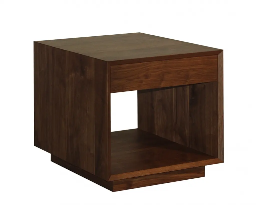 The Modern End Table is a beautifully mitered piece which features a beveled edge, drawer, and open shelf area below for storage. This modern yet simple design coordinates well with the Modern coffee table and a variety of our sofa designs.