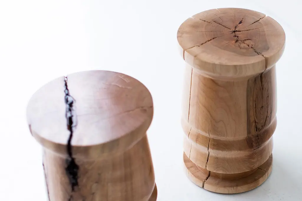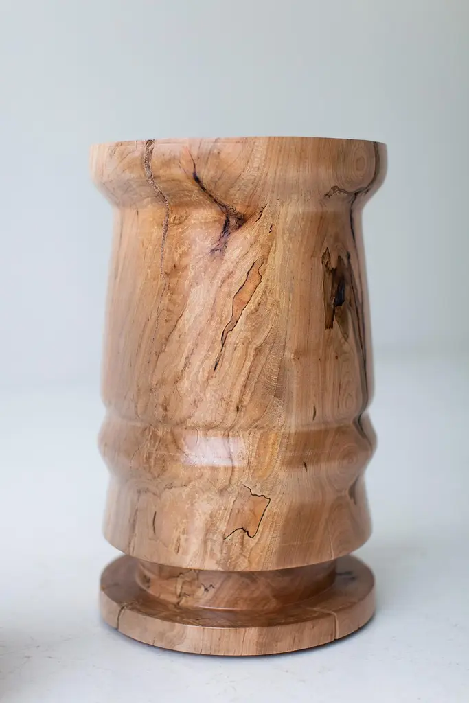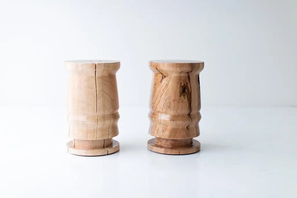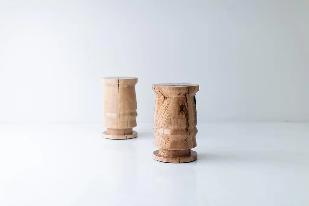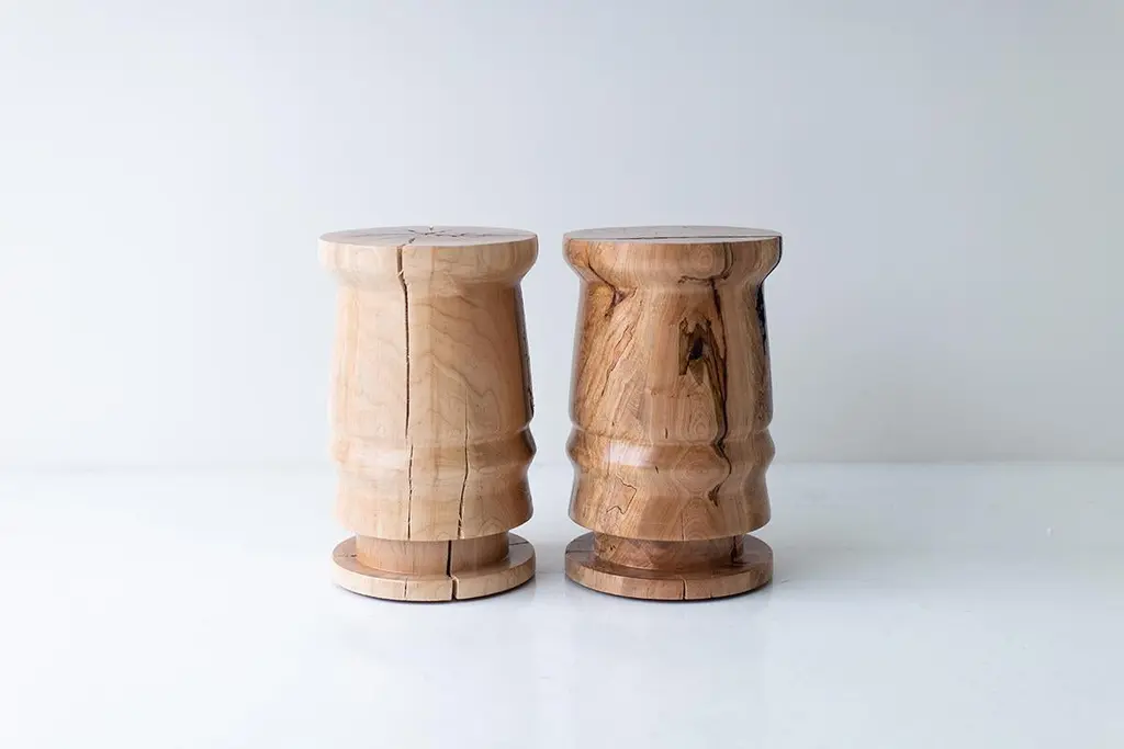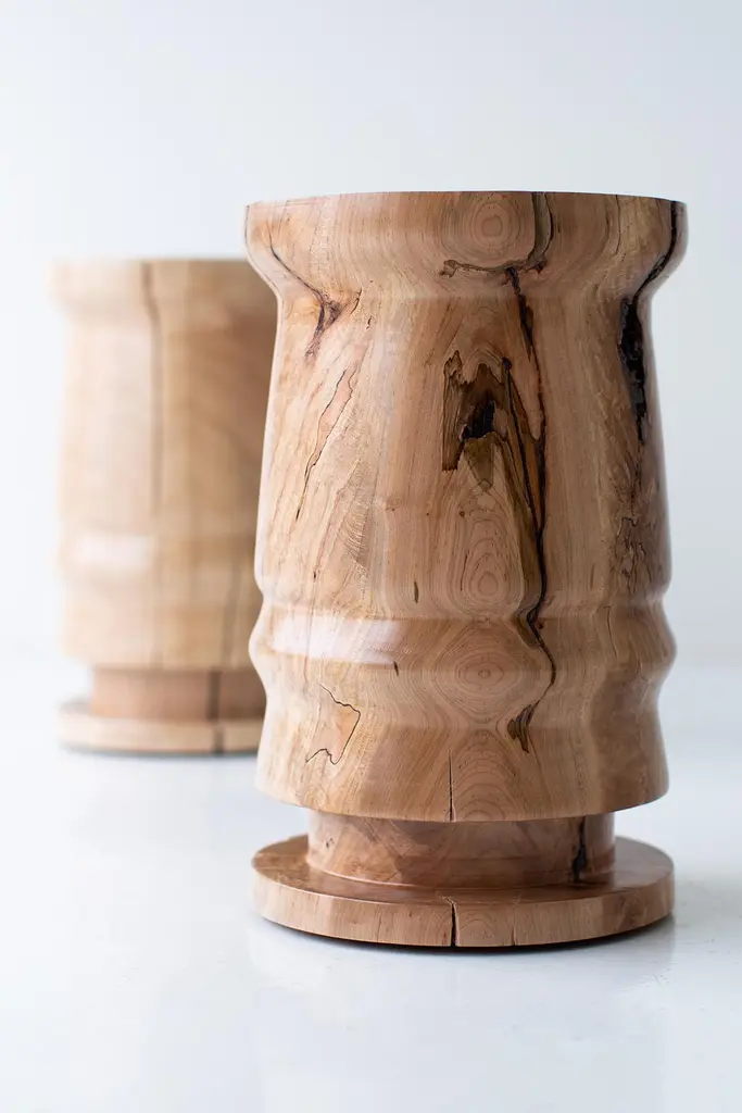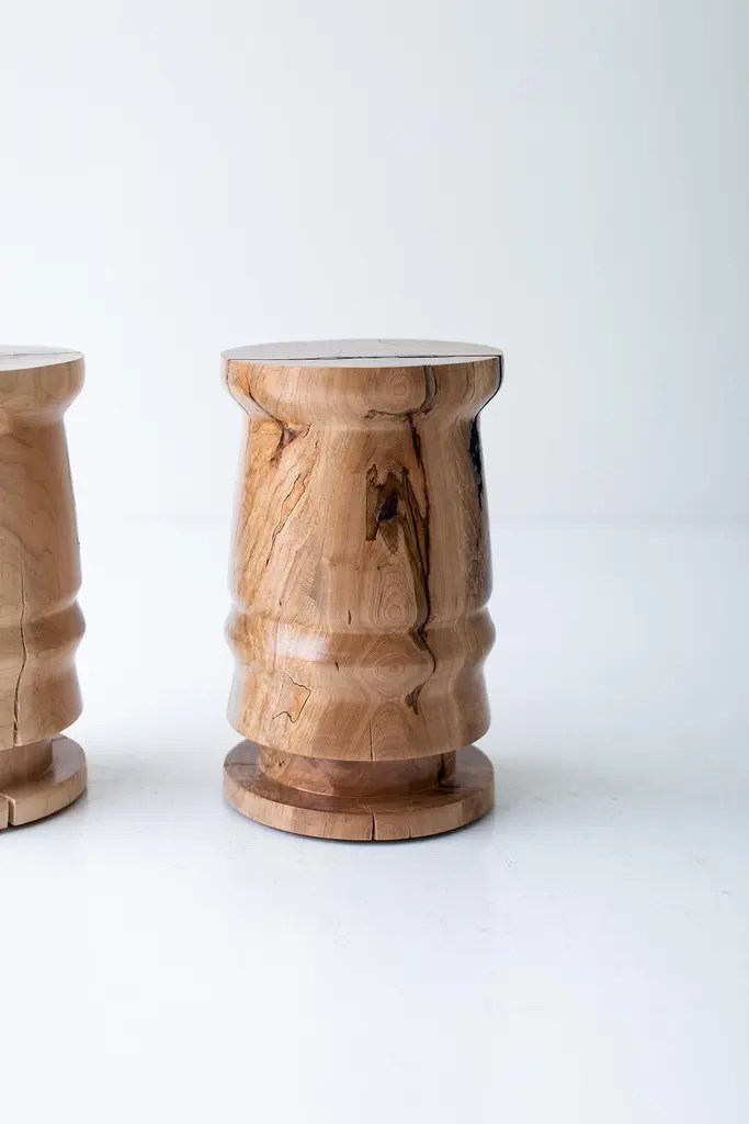 Please scroll down to read IMPORTANT INSTRUCTIONS ABOUT OUR STUMPS before purchase!Why buy BERTU HOME stumps?KILN DRIEDOur stumps all go through a drying process in our kiln, sometimes for up to a month. We are meticulous with bringing each and every log to a specific moisture level. This process helps with major cracking, long-term moisture issues, and bugs.ECO FRIENDLYIn an effort to replenish the trees we use, we plant 50+ trees a year. In addition, we practice salvage logging. Where do we source these? Some of the trees fall naturally. Some have damage from severe wind, lightning, flood, disease, or other natural disturbance so they need to be cut and removed before they fall. Others are fresh cut because people want them off their land. Salvage logging may reduce erosion, reduce intensity of future wildfires, and slow buildup of pest insects.FAMILY OWNEDThese are made from our family to yours. Quality is of utmost importance, and we hand cut, de-bark, sand, and finish every piece with care. See how we do it here.COMMERCIAL GRADEThese stumps are meant to be loved and USED. Each is finished with a durable commercial-grade finish. This finish is tough enough for spills, kids, and holds up in hotel and hospitality settings.PLEASE NOTE : These stumps will age naturally, and even more so being outdoors and exposed to the elements. Each is a solid log with its own unique character so we can not guarantee the finish won't fade or discolor as this varies per climate and log. This Modern End Table - The Torre is made in the heart of Ohio with locally sourced wood. The stump can be used for a side table, a stool (18" is perfect for dining seat height), a nightstand, etc. Each end table is made from a solid trunk of maple and hand turned. Each piece is hand sawed, sanded, and sprayed with a commercial grade finish. Every part of the process is handled with care to honor the unique markings of each tree. PLEASE NOTE: THESE ARE PRONE TO CRACKING. WE LOVE THE LOOK BUT THESE DEFINITELY ARE NOT FOR THE PERSON WHO WANTS A PERFECT SQUARE.... LOTS OF CHARACTER. Cracks can even be as big as 1/2" wide due to proper drying in our kiln. The idea is that most of the cracking happens before it is sprayed, shipped, and in its new home. These are all slightly different in character and they may vary in size - No two pieces are exactly alike. Our team and clients absolutely love these."I love natural elements. I'm inspired by them and I love being surrounded by them. I also love modern furniture and accessories. When thinking of new products a few years back, I wanted to do a modern twist on something considered rustic and "country".Thus the whitewash stump table was born! It's important to our family to not only design and manufacture beautiful things, but to provide the best quality and experience. There is a lot of love that goes into each stump, as we hand pick and finish each one per order. Add a little piece of nature to your home in a modern way!" -- Gretta Jones // Bertu HomeIMPORTANT INFORMATION ABOUT OUR STUMPS...1. Please unpack your stump immediately and leave it out of any packaging. These are real pieces of wood and need to breathe!2. For OUTDOOR stumps : Though these are kiln dried and the wood can be used outdoors, sometimes when they arrive in different climates, humidity levels adjust and can affect the finish on top. We see this more often in direct sunlight. We do our very best and continue to make sure there are no issues, but we can not control climate. Solid wood and the elements are unpredictable and we will not be liable. The great thing about these logs is you can always sand them down and refinish.3. Wood naturally moves. These are solid pieces and for that reason, they are prone to cracking. You may get more cracks or bigger cracks in the first few weeks as the wood acclimates to its new home and climate.4. These stump tables have nylon glides (feet) underneath not only to make them easier to move around (they are heavy!), but also so there is nice air flow to the wood. The air flow is most effective on hard flooring. If you put these on rugs or carpeting, we suggest checking on the underside of your stump periodically to prevent any issues.5. We are not liable for any damages to property or people. We are always available, honest, and transparent about our products. Thank you and I hope you love these!+ + + + + + + + + + + + + + + + + + + + + + +specsPeriod/Model: New; Organic ModernSpecs: Maple, Natural Commercial-Grade FinishCustomizable: Yes! It's what we do :)dimensionsH: 18"W: 12" x 12"