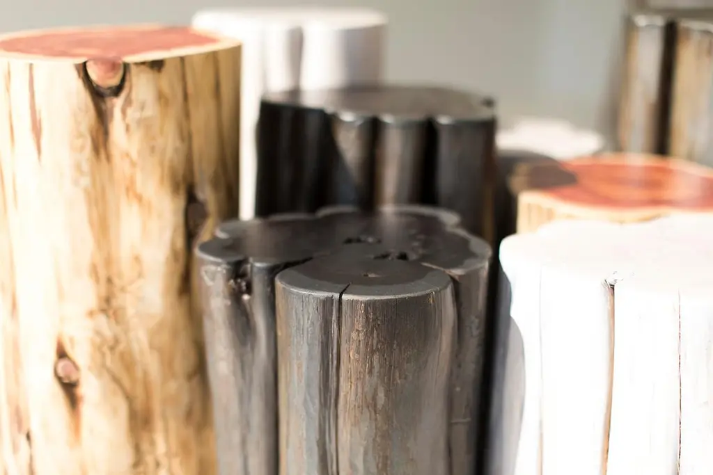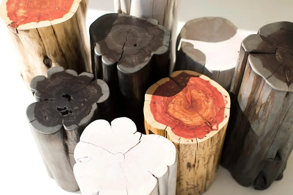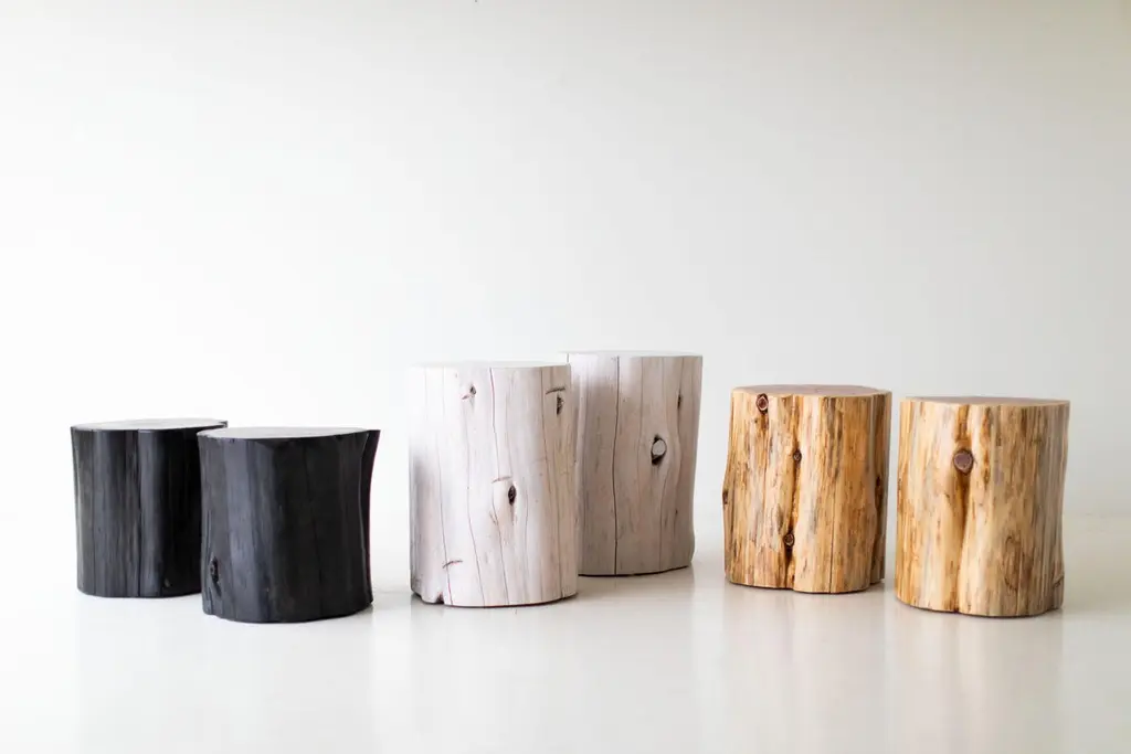 Please scroll down to read IMPORTANT INSTRUCTIONS ABOUT OUR STUMPS before purchase!Why buy our stumps?Kiln driedOur stumps all go through a drying process in our kiln, sometimes for up to a month. We are meticulous with bringing each and every log to a specific moisture level. This process helps with major cracking, long-term moisture issues, and bugs.Eco friendlyIn an effort to replenish the trees we use, we plant 50+ trees a year. In addition, we practice salvage logging. Where do we source these? Some of the trees fall naturally. Some have damage from severe wind, lightning, flood, disease, or other natural disturbance so they need to be cut and removed before they fall. Others are fresh cut because people want them off their land. Salvage logging may reduce erosion, reduce intensity of future wildfires, and slow buildup of pest insects.Family ownedThese are made from our family to yours. Quality is of utmost importance, and we hand cut, de-bark, sand, and finish every piece with care. Commercial gradeThese stumps are meant to be loved and USED. Each is finished with a durable commercial-grade finish. This finish is tough enough for spills, kids, and holds up in hotel and hospitality settings.Please note : These stumps will age naturally, and even more so being outdoors and exposed to the elements. Each is a solid log with its own unique character so we can not guarantee the finish won't fade or discolor as this varies per climate and log. This tree stump table is made in the heart of Ohio with locally sourced wood. The stump can be used for a side table, a stool, or grouped together for a coffee table. Each stump is made from a solid trunk of red cedar and each is hand sawed, sanded, and sprayed with a durable exterior finish. Every part of the process is handled with care - even the bark is hand chipped and sanded to honor the unique markings of each tree. Note: These are REAL tree stumps. Natural movement and cracking is normal. These are all slightly different in character and they may vary in size - No two pieces are exactly alike. Each size and color can be done in our indoor finish or more durable outdoor finish (exterior finish is $50 more per stump.) Our team and clients absolutely love these."I love natural elements. I'm inspired by them and I love being surrounded by them. I also love modern furniture and accessories. When thinking of new products a few years back, I wanted to do a modern twist on something considered rustic.Thus the whitewash stump table was born! It's important to our family to not only design and manufacture beautiful things, but to provide the best quality and experience. There is a lot of love that goes into each stump, as we hand pick and finish each one per order. Add a little piece of nature to your home in a modern way!" -- Gretta Jones // Bertu HomeImportant information about our stumps...1. Please unpack your stump immediately and leave it out of any packaging. These are real pieces of wood and need to breathe!2. For OUTDOOR stumps : Though these are kiln dried and the wood can be used outdoors, sometimes when they arrive in different climates, humidity levels adjust and can affect the finish on top. We see this more often in direct sunlight. We do our very best and continue to make sure there are no issues, but we can not control climate. Solid wood and the elements are unpredictable and we will not be liable. The great thing about these logs is you can always sand them down and refinish.3. Wood naturally moves. These are solid pieces and for that reason, they are prone to cracking. You may get more cracks or bigger cracks in the first few weeks as the wood acclimates to its new home and climate.4. These stump tables have nylon glides (feet) underneath not only to make them easier to move around (they are heavy!), but also so there is nice air flow to the wood. The air flow is most effective on hard flooring. If you put these on rugs or carpeting, we suggest checking on the underside of your stump periodically to prevent any issues.5. We are not liable for any damages to property or people. If you have any concerns or questions you need to discuss, please write or call. We are always available, honest, and transparent about our products. Thank you and I hope you love these!specsPeriod/Model: New; Organic ModernSpecs: Red Cedar with Whitewash, Black, or Natural Commercial-Grade Finish DimensionsH: 18"W: 15" (give or take)"This listing is for our "large" diameter stumps, the biggest diameter we offer. We have medium and small sizes as well!"Shipping price is per piece. If you are buying multiples, there will be additional charges.