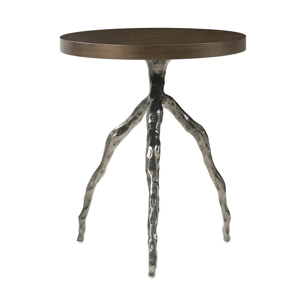 Faux Bois Accent Table in our dark Earth Finish. This contemporary accent table is made of figured ash and with cast metal branch form base in our Volcanic finish.Dimensions: 20" W x 20" D x 24" H