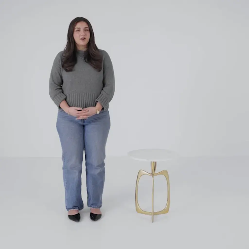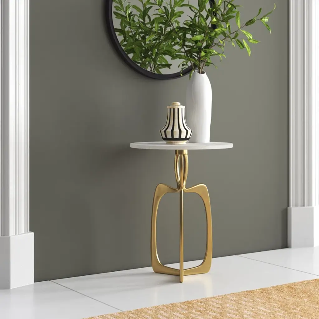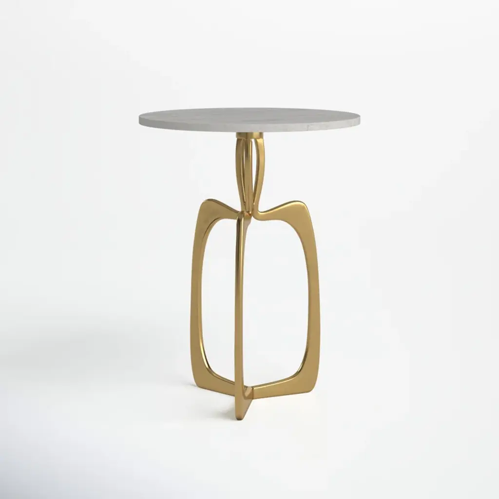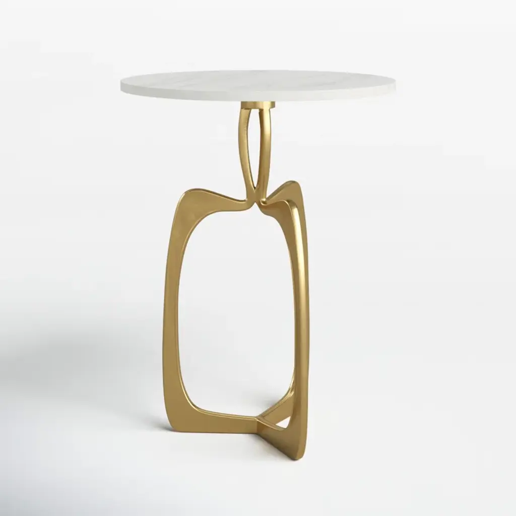 Elevate your home with this modern accent table, a perfect blend of elegance and durability. Designed for versatility, it enhances any living room, bedroom, or office with its sleek and contemporary aesthetic. Crafted from high-quality metal, stone, aluminum, and marble, this table provides a durable and stable surface for decor, books, or beverages. Its sculptural base adds an artistic touch, making it a functional statement piece that complements modern interiors. Ideal for those who love stylish yet practical furniture, this accent table effortlessly combines beauty with everyday utility. Whether used as a side table or a display stand, it offers a seamless way to upgrade any space. Add this sophisticated table to your decor today and bring a touch of timeless modern design into your home.