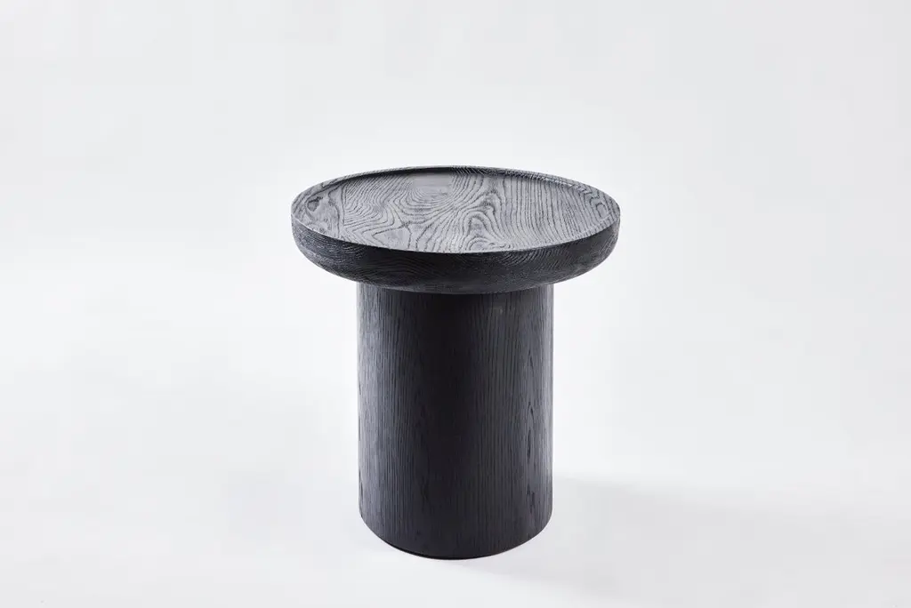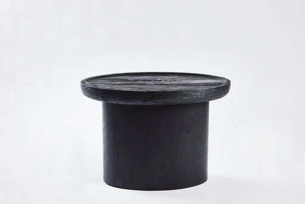 Modern Low Oval Findley Side Table In Ebony On Oak Finish By Martin & Brockett