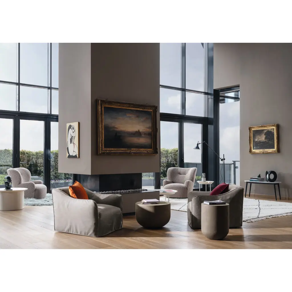 Introducing the luxurious HEIKO Modern Matt Stain Side Table by Gervasoni. Crafted from high-density polymer and finished with a smooth clay layer, this elegant collection features a matte stain-proof treatment for a long-lasting beauty and durability. Available in three chic finishes: Ombra, Cassel, and Siena in four different sizes. This table integrates into various interior styles, serving as a sophisticated surface or stylish accent in living rooms, offices, or lounges.