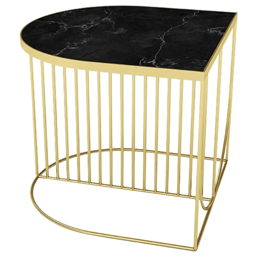 Modern Palafita Side Table, Sahara Noir Marble, Handmade Portugal By Greenapple