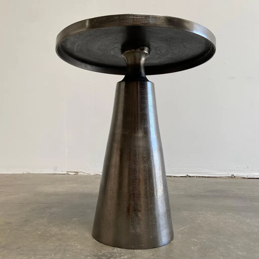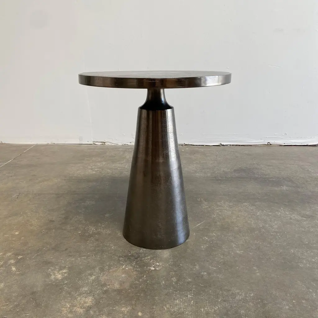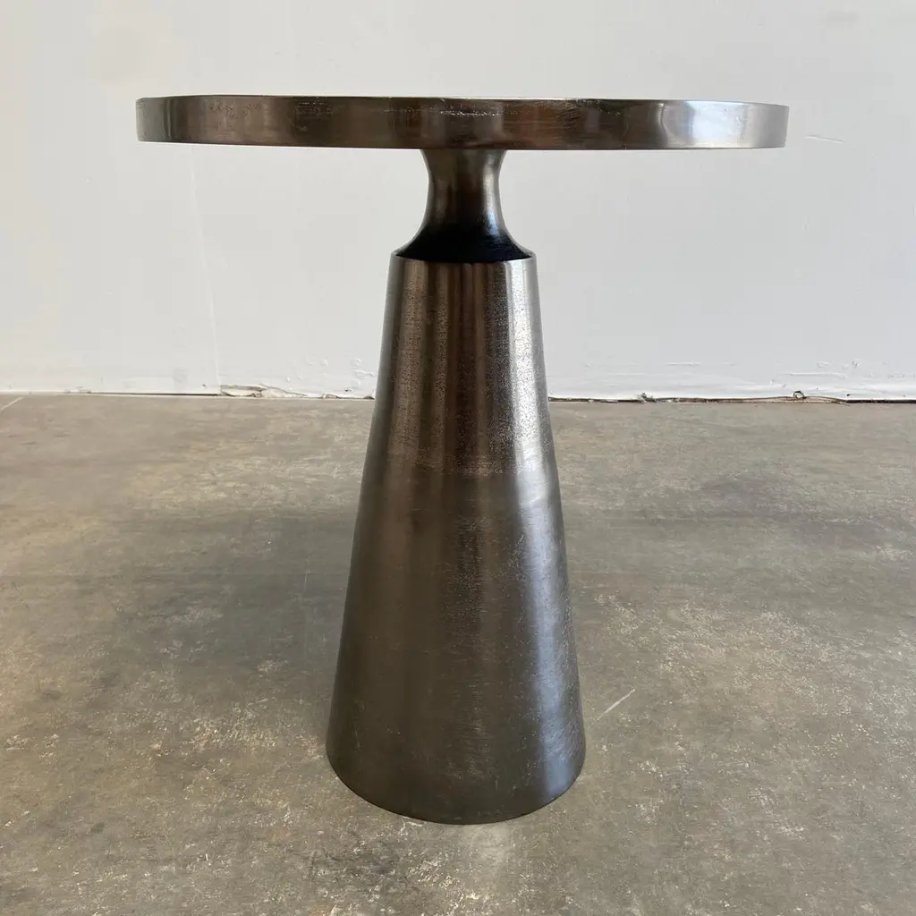 Modern Style Side Table In Antique Pewter With Aged Patina